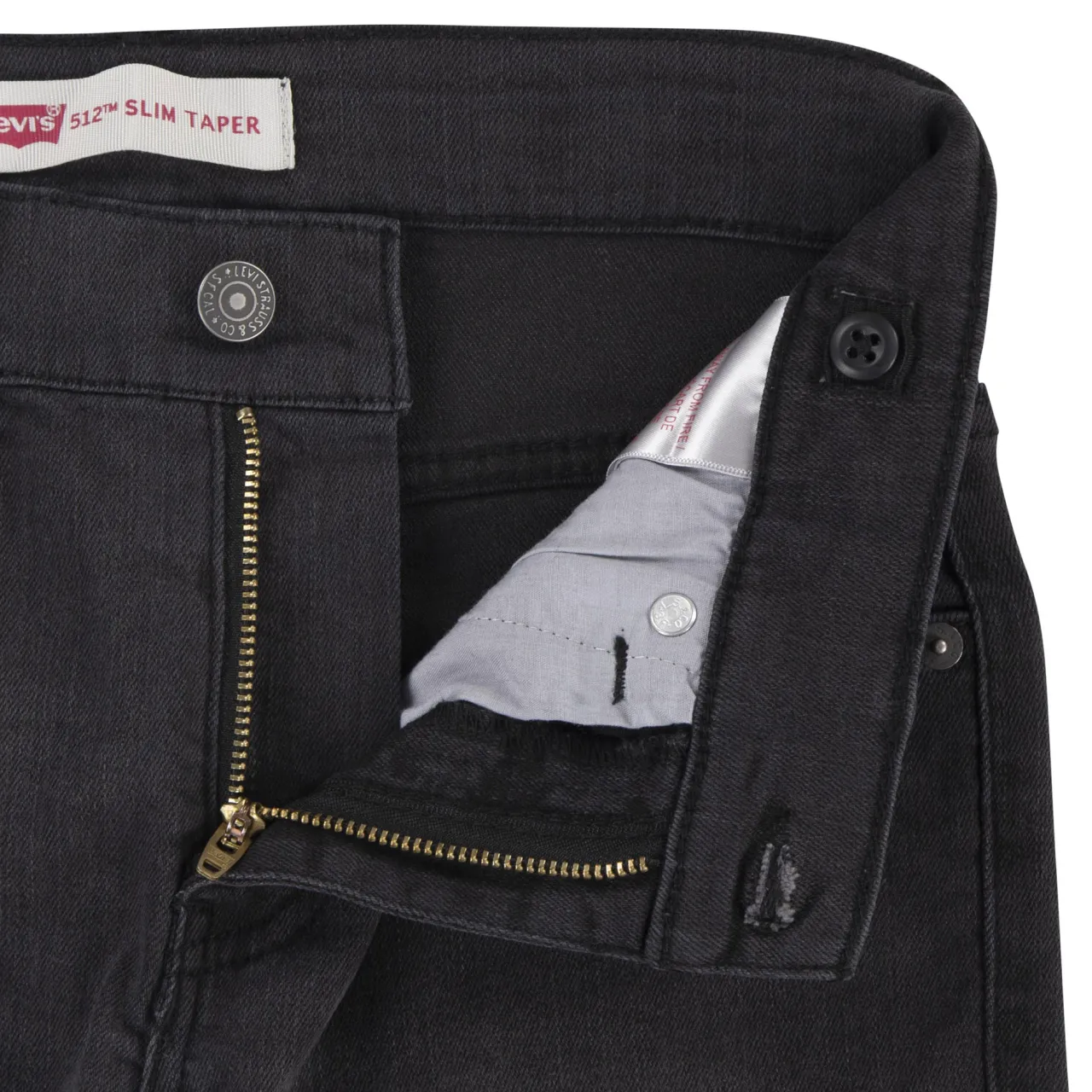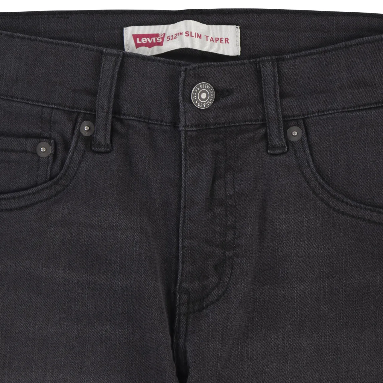 - Slim-leg silhouette, tapers from knee to ankle, adjustable waistband provides a tailored fit, belt loops, five-pocket style, button and fly fastening, brand logo details