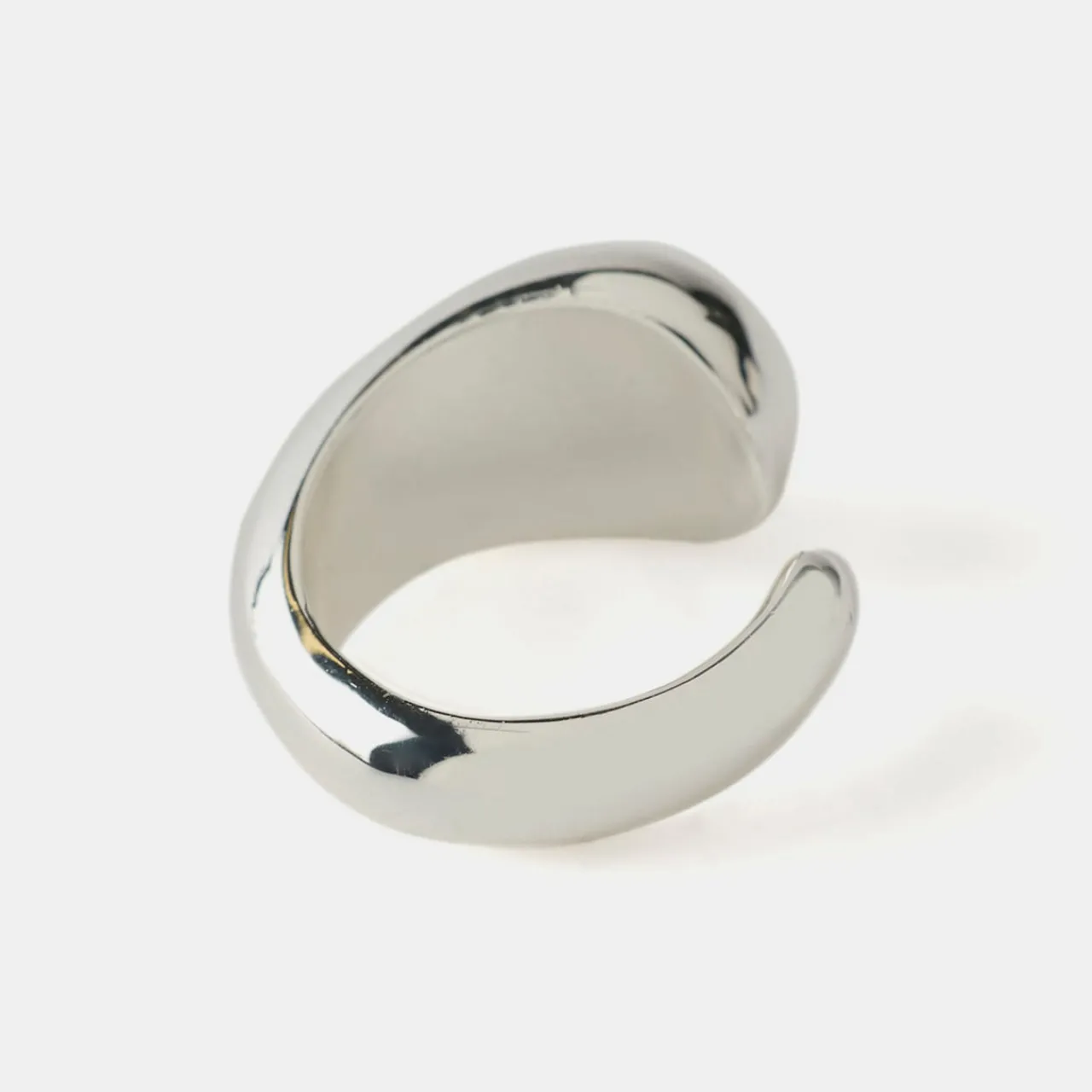 - Polished silver-tone finish, teardrop design, cut-out band