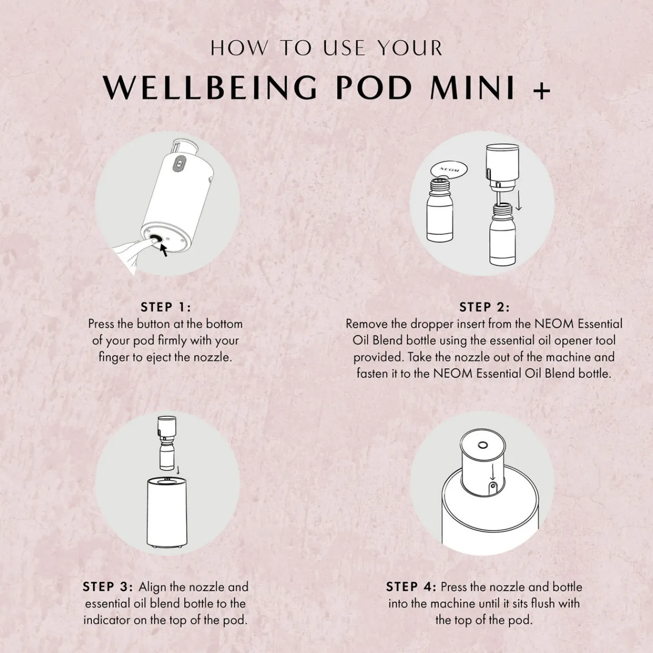 - How to use: Simply place your favourite NEOM Essential Oil Blend inside the Pod. Choose from a range of carefully curated settings to select car or home mode and your time, light and diffusion strength.