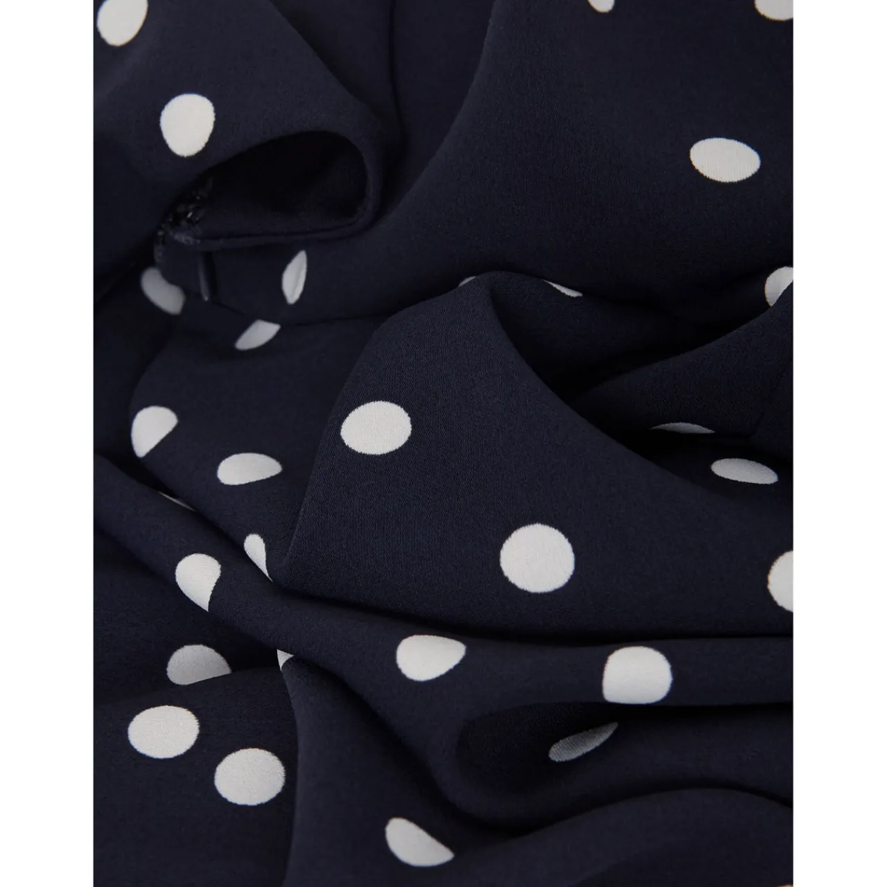 - Dot print, wrap around bodice, covered belt, sleeveless, wide leg