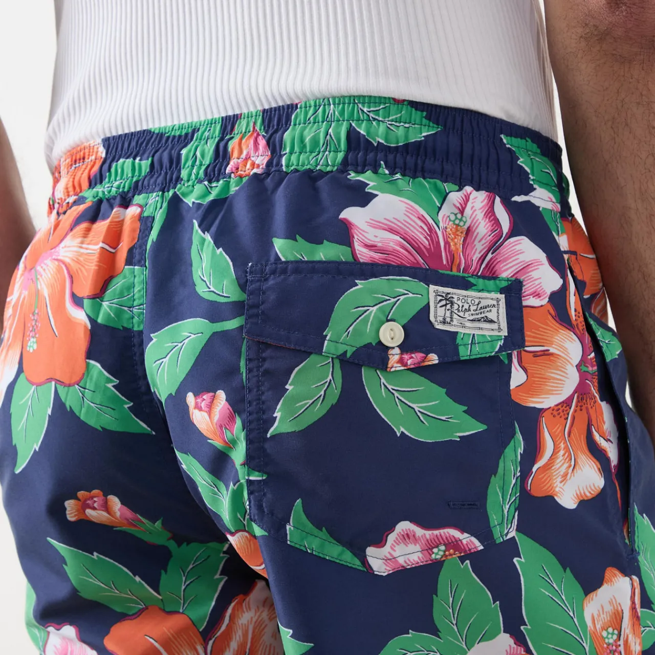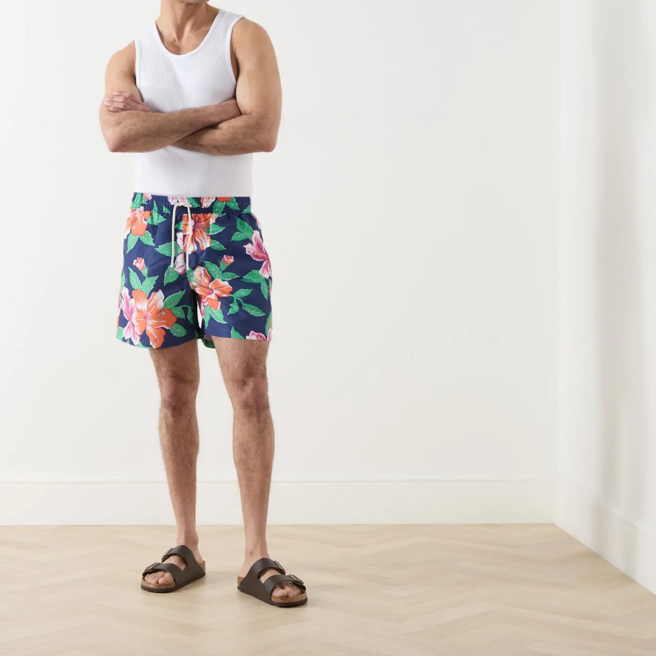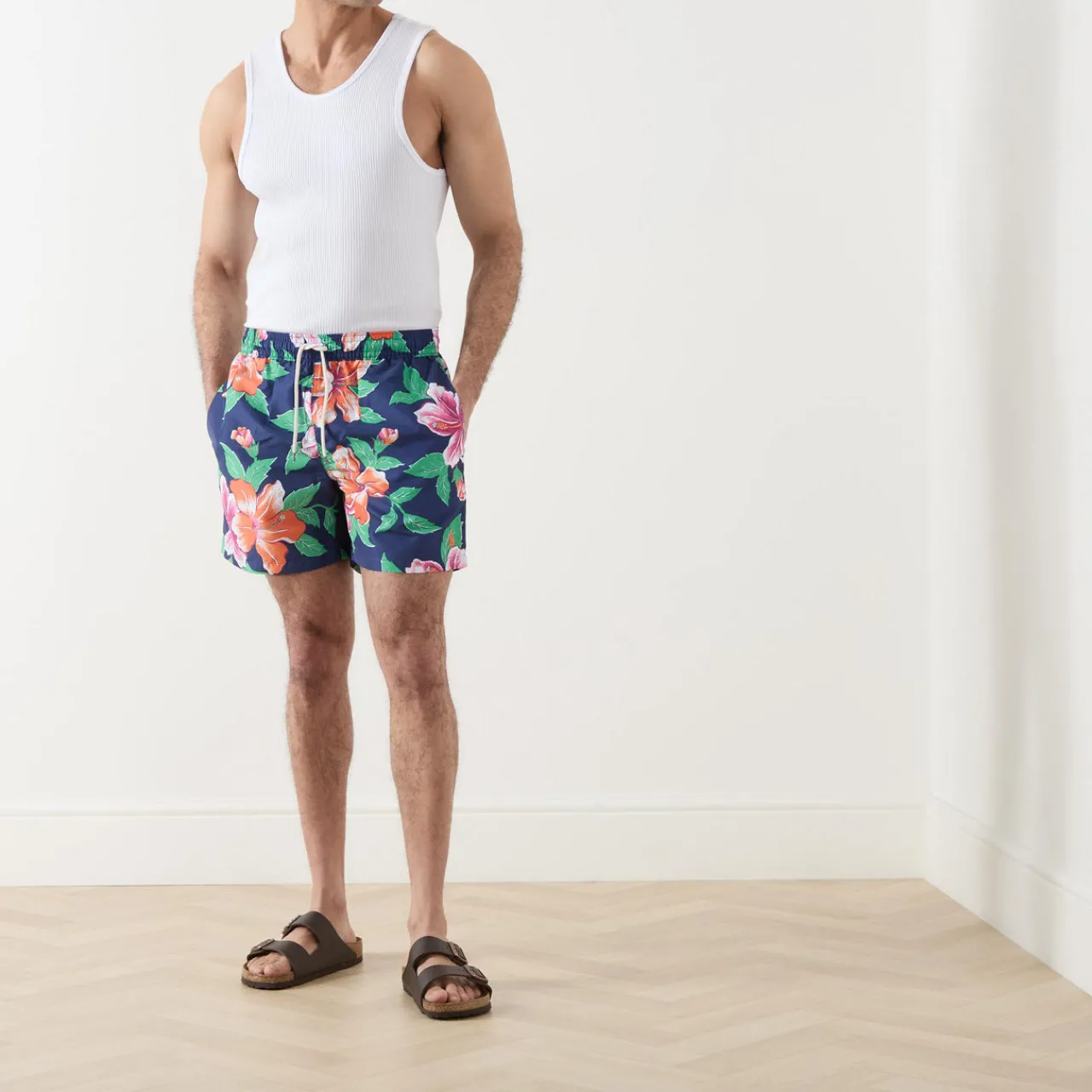 - Elasticated waistband with drawstring adjustable fit, side entry pockets, rear pocket, logo badge, floral print