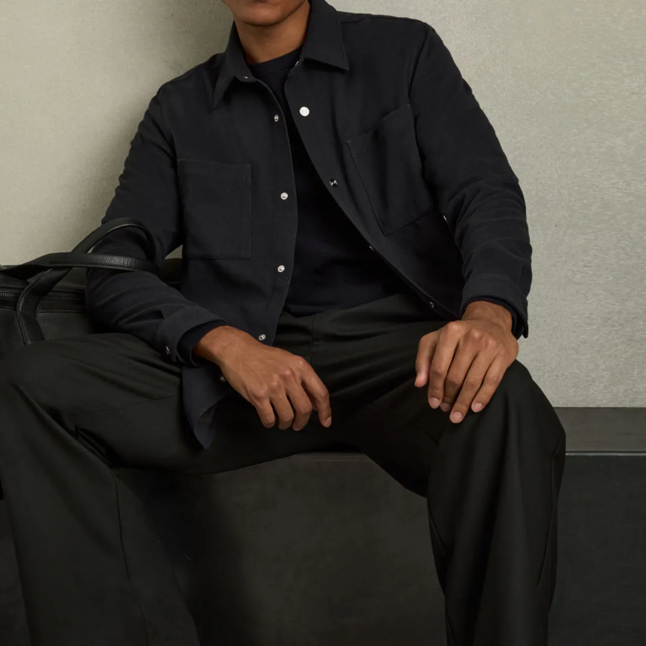 - Brushed corduroy fabric, chest patch pockets, press-studs fastenings, classic collar, press-stud cuffs, long sleeves