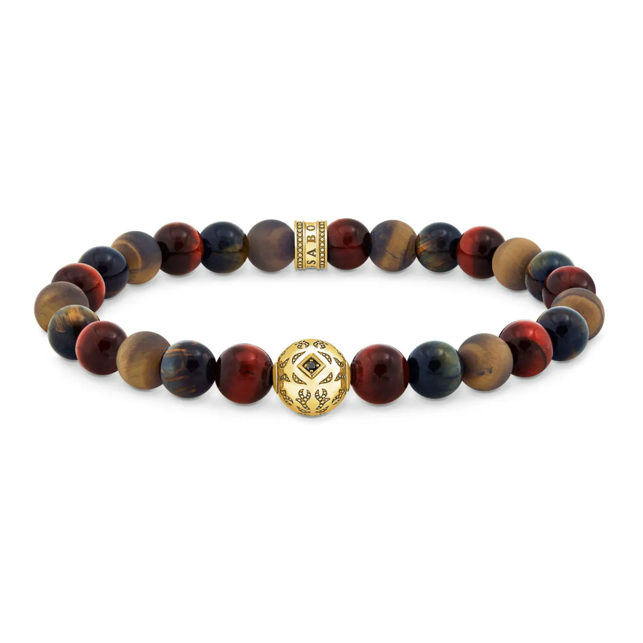 - Tiger’s eye beads, finely engraved bead, logo ring, 925 sterling silver, 750 gold-plating