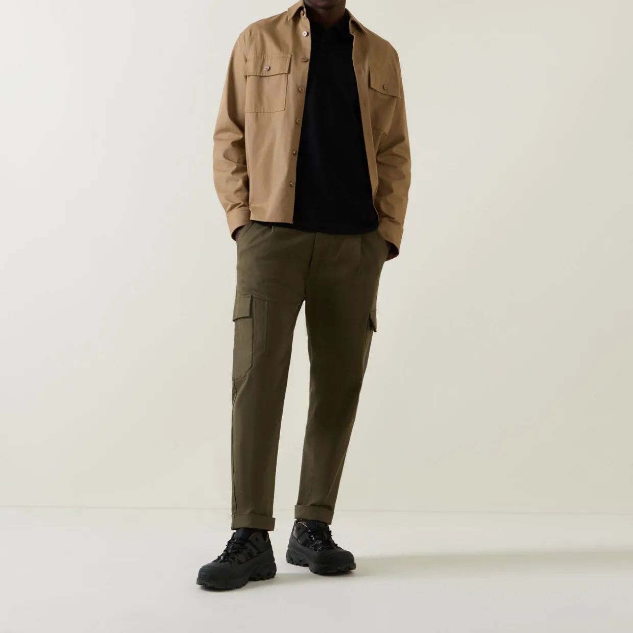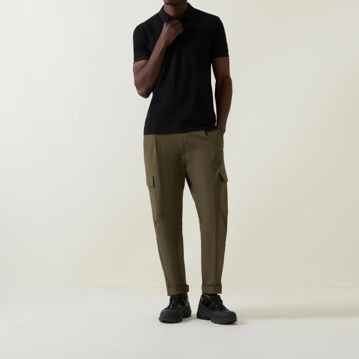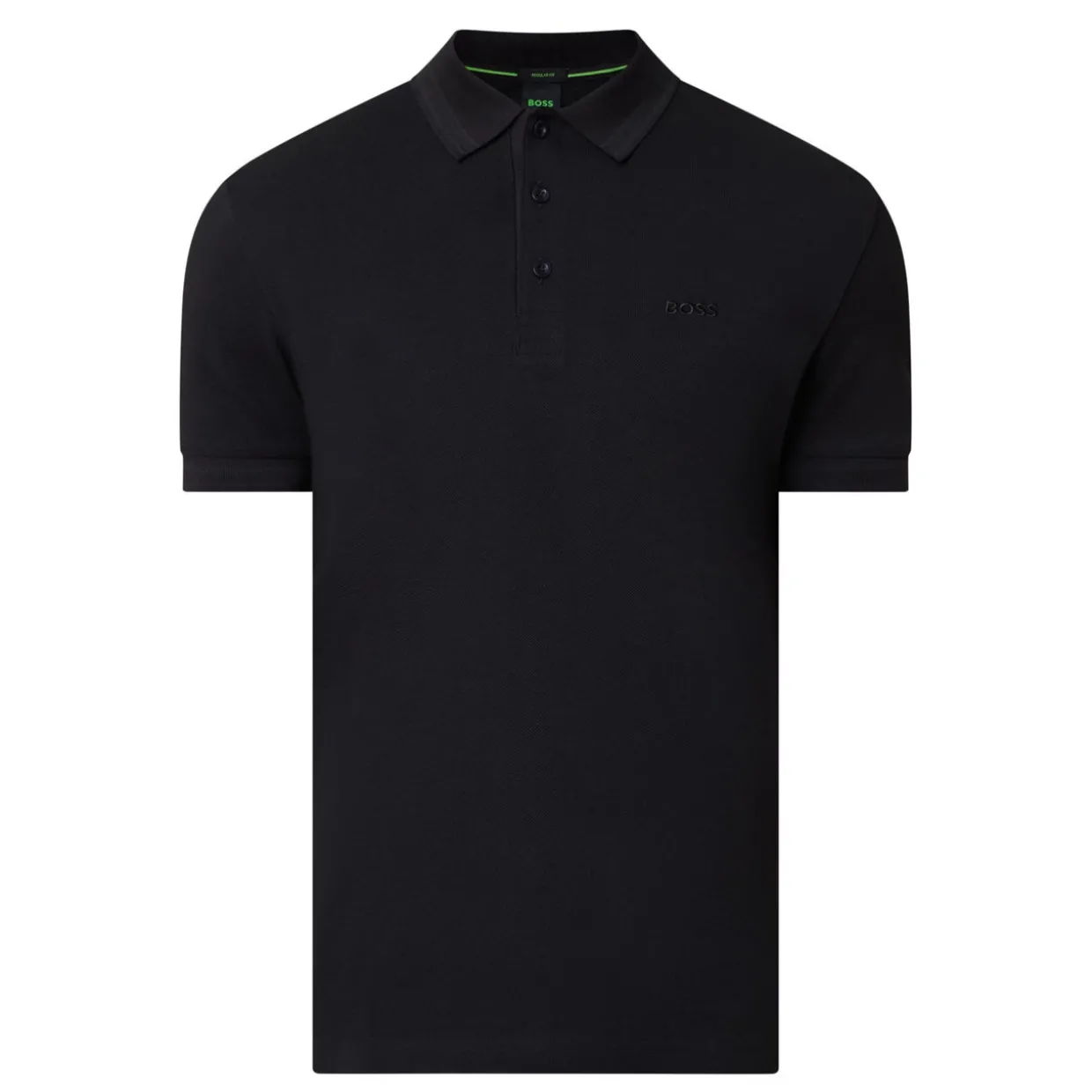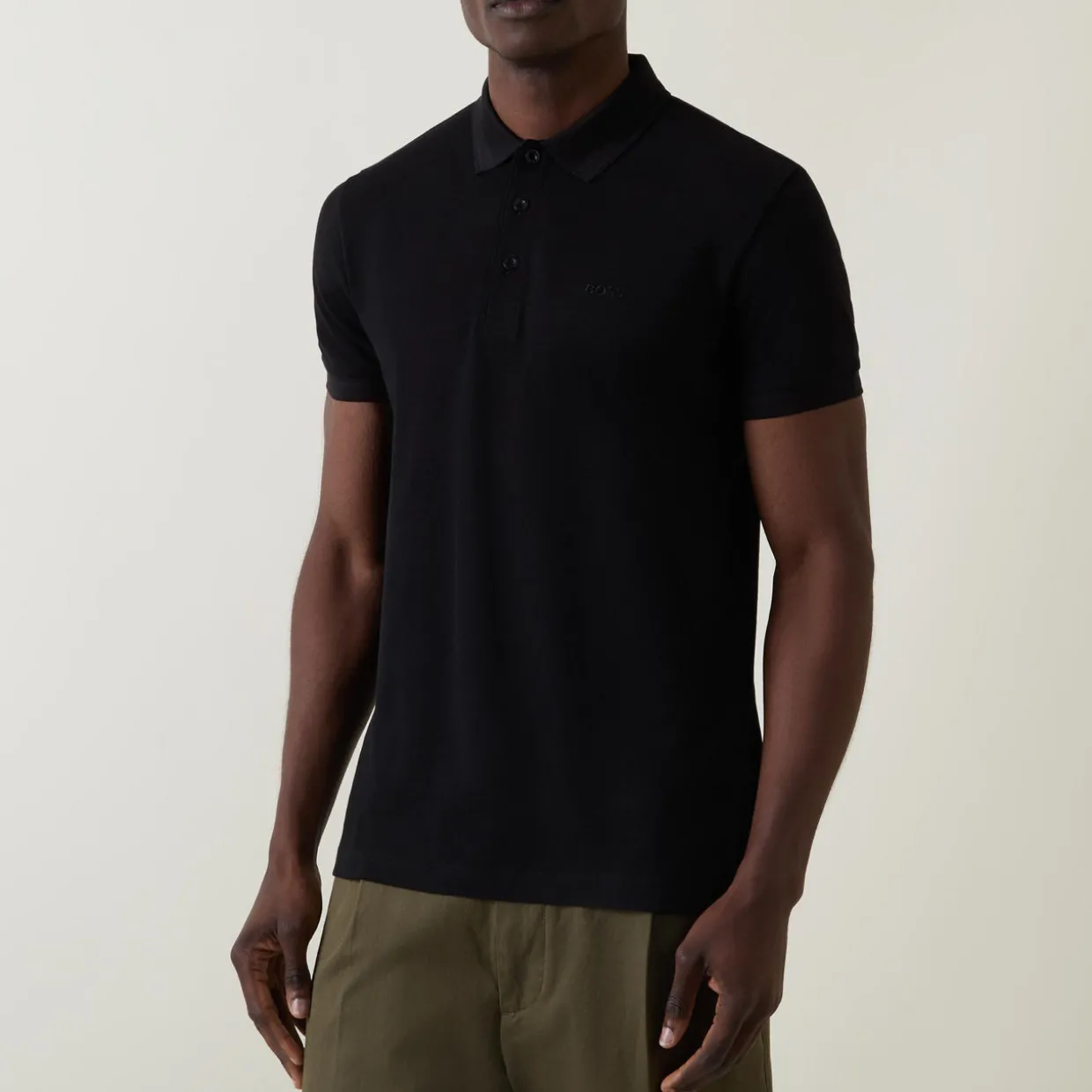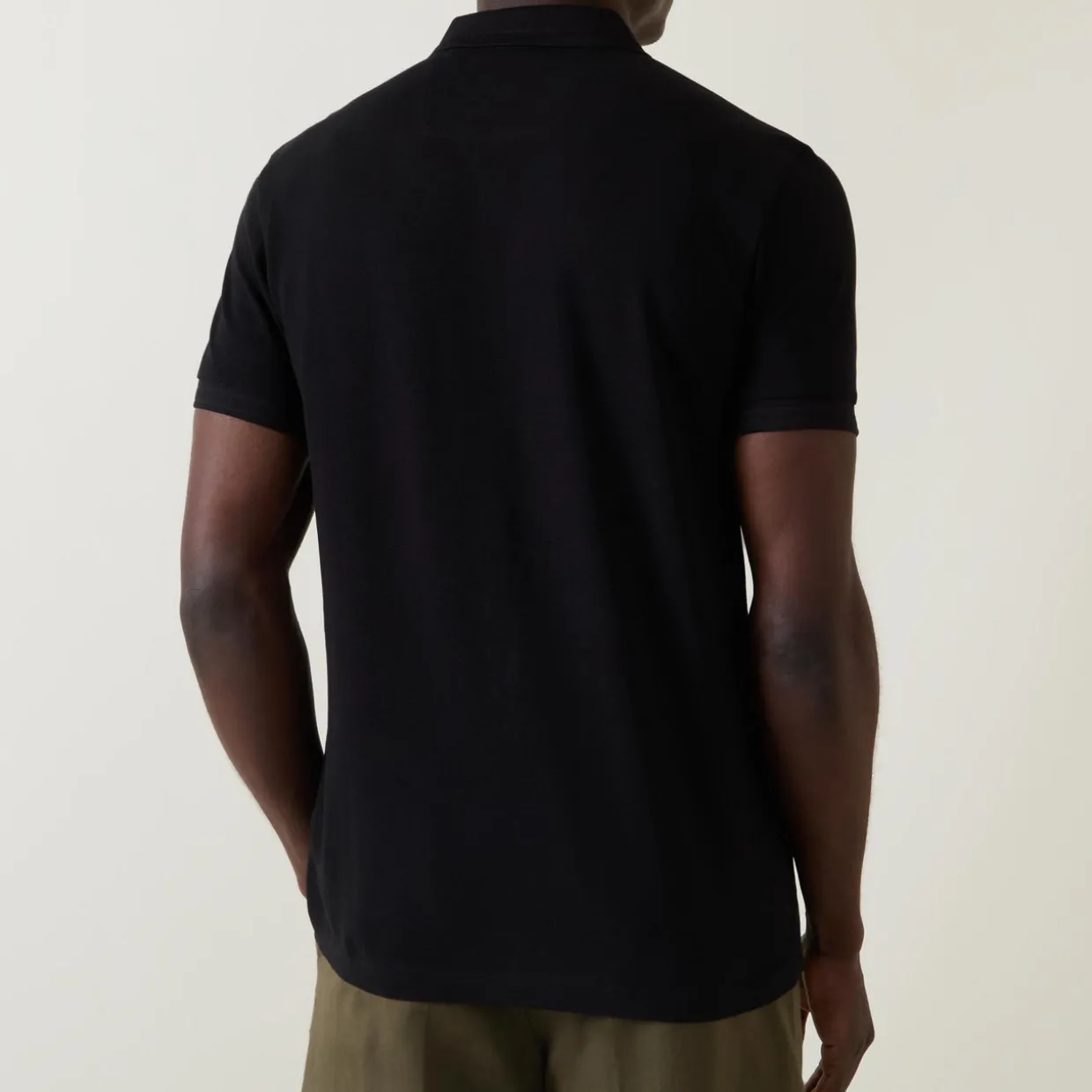 - Polo collar, short sleeves, straight hemline, logo detail, button fastenings, tipped trims