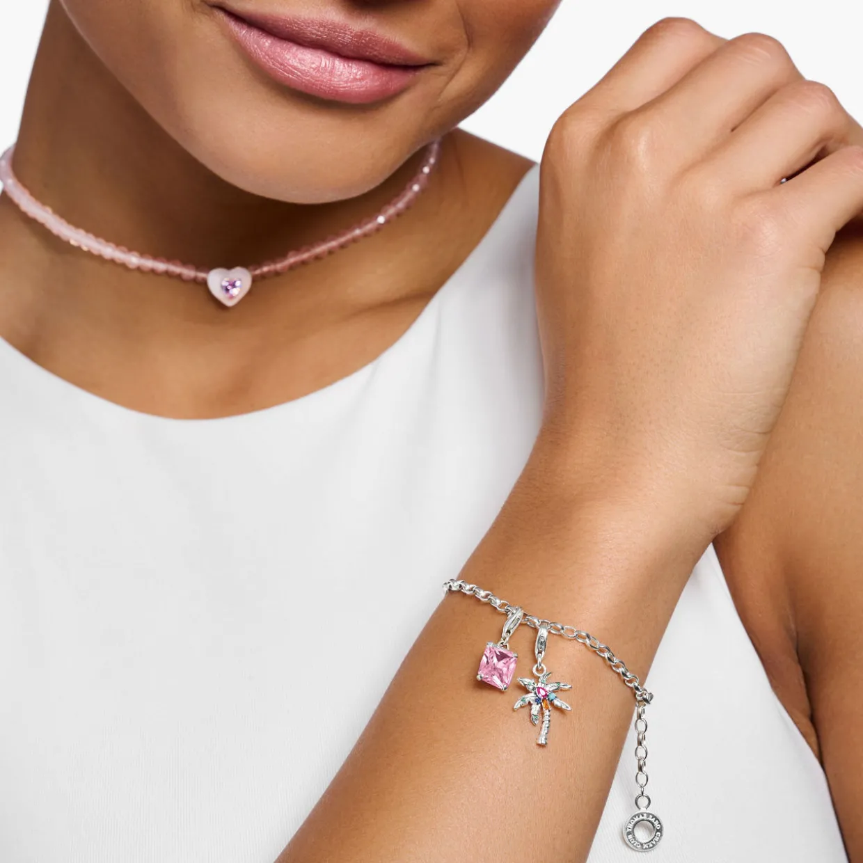 - Palm tree shape, coloured stone embellishment, lobster clasp fastening