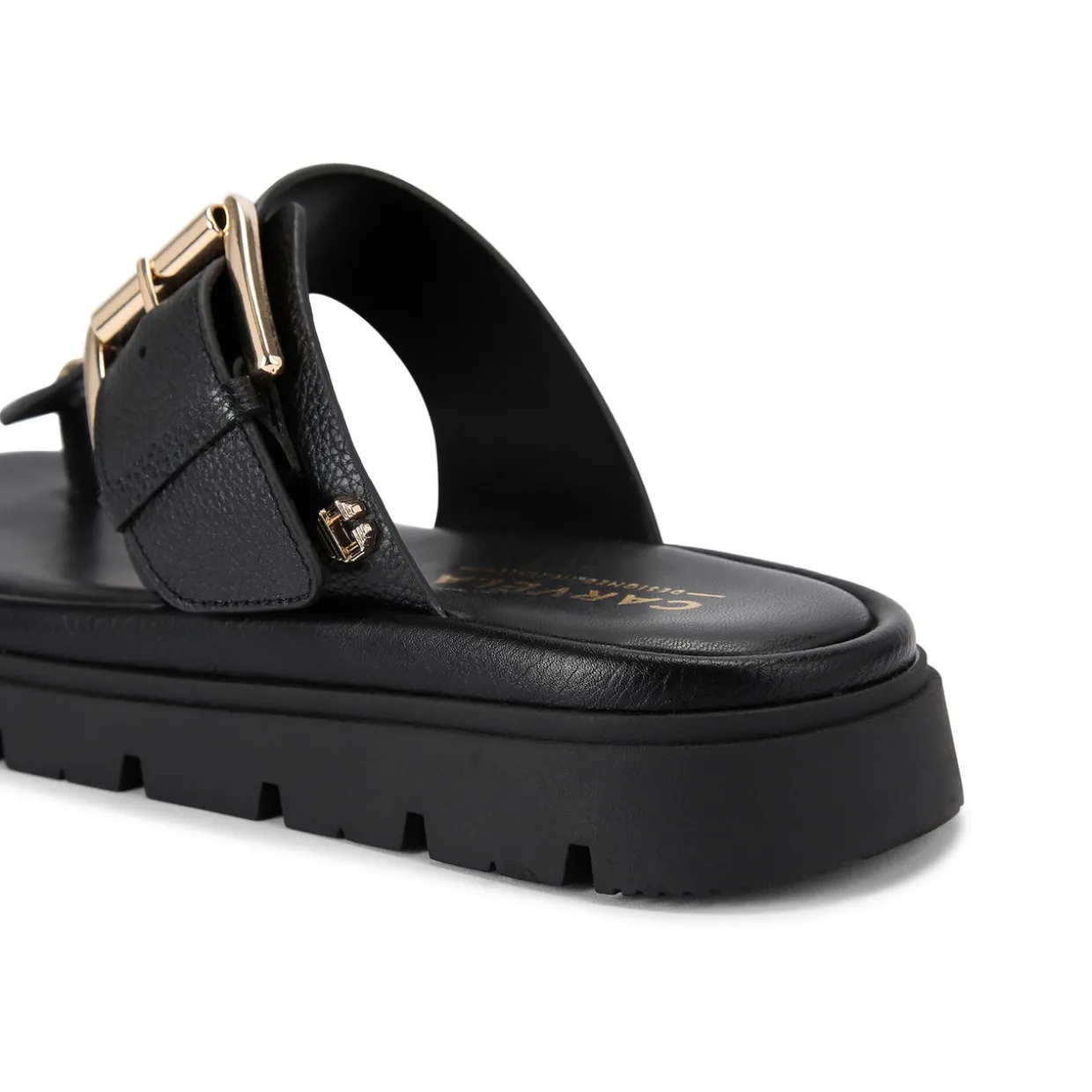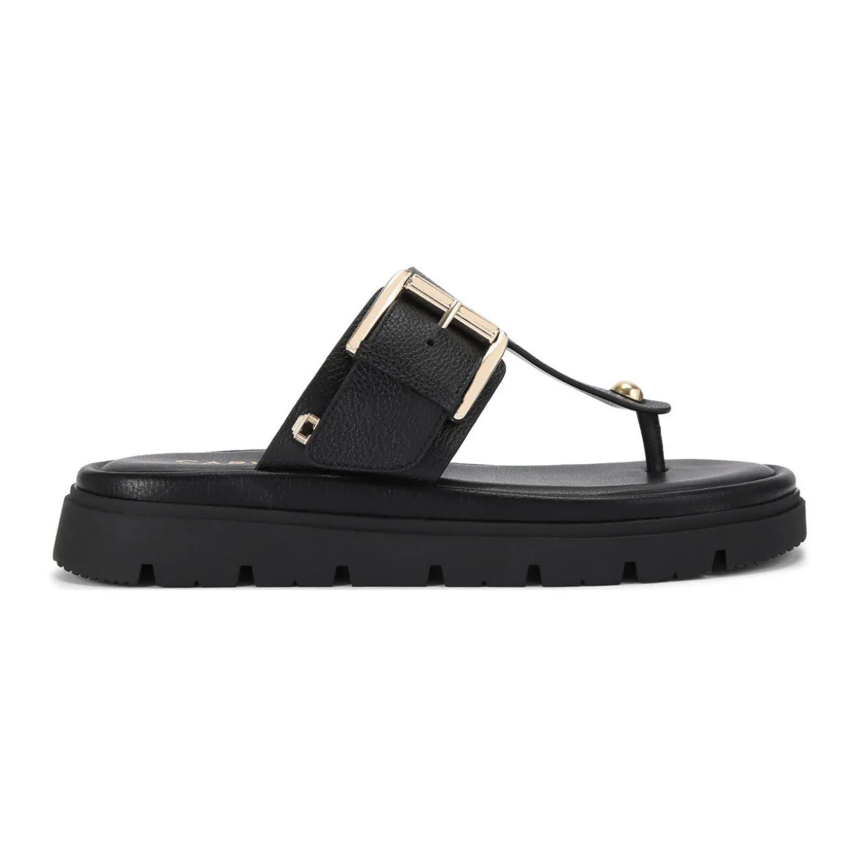 - T-bar, textured upper with gold tone buckle fastening the strap, All Day Long technology