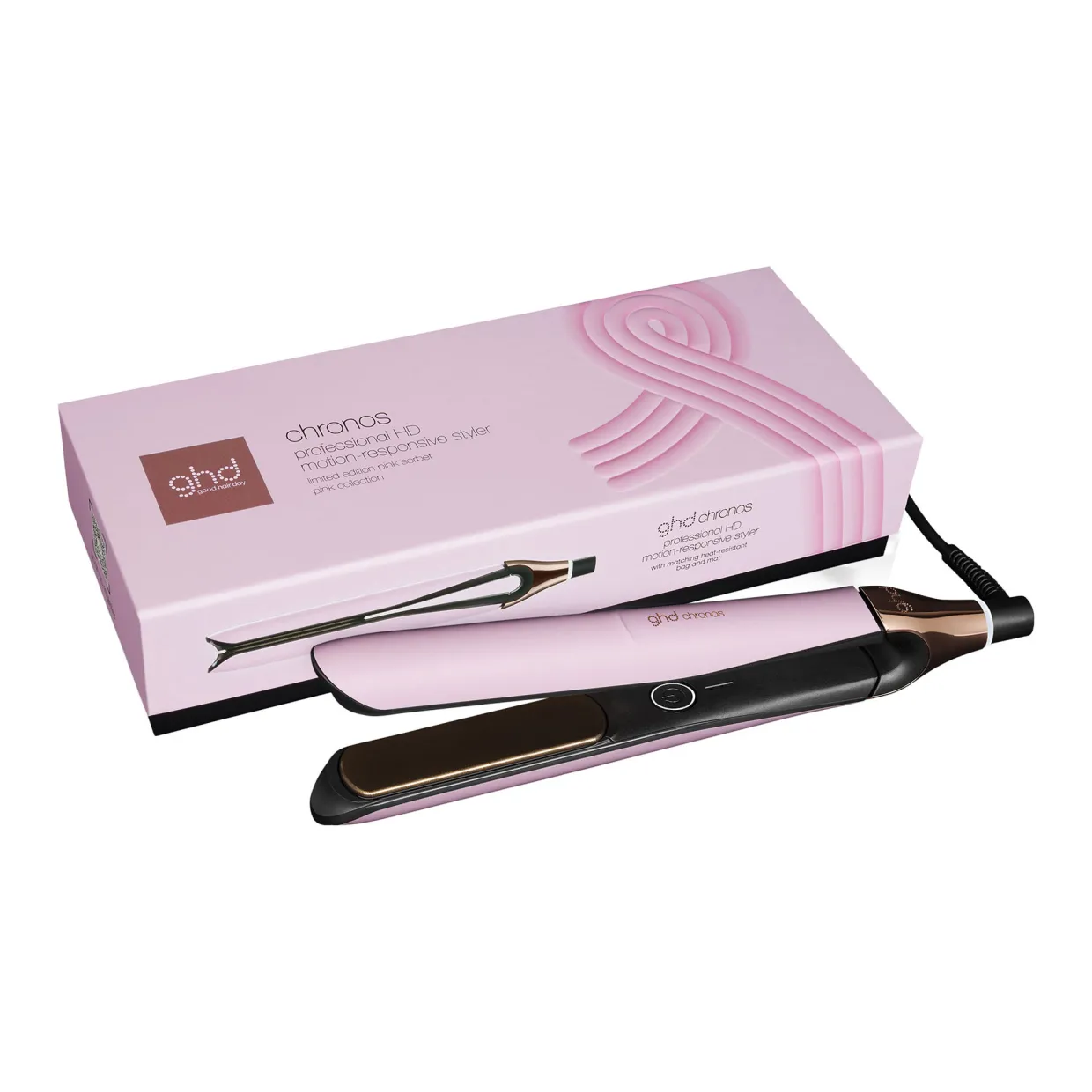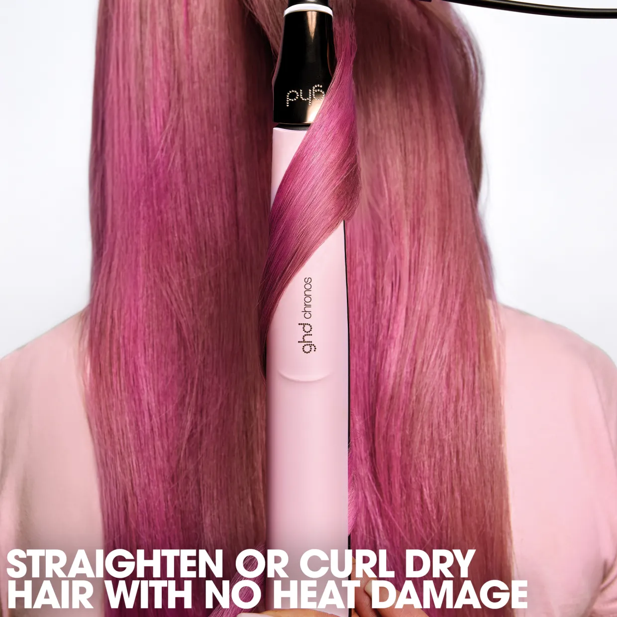 Description:ghd Chronos™ delivers 3x faster one-stroke styling and High-Definition results that last 24hrs*. With its ultra-ergonomic, sleek rounded design, you can switch from straight to curly, flicked, or wavy looks with just the tilt of your hand. It’s versatility at its best.