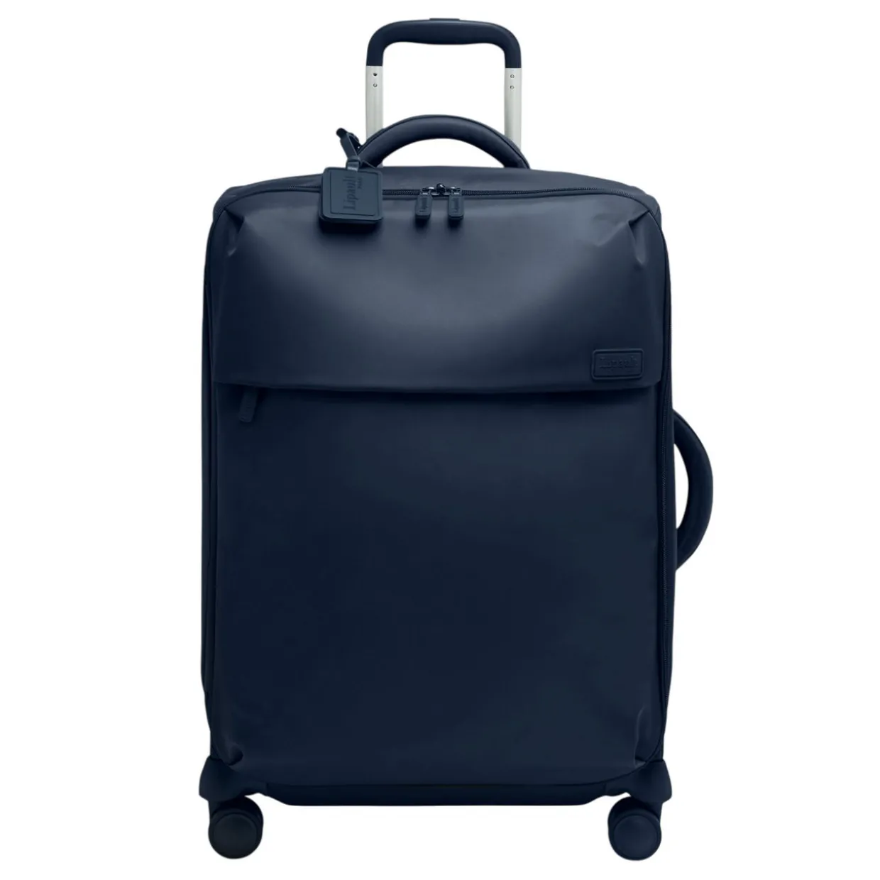 - Features: Exterior: TSA padlock provided, two-way zip fastening, silicone zip pullers, top handle, side handle, double tube handle, multidirectional double wheels, one front zipped pocket, address tag, brand logo details, water repellent fabric. Interior: One main compartment, three zipped pockets, two adjustable straps