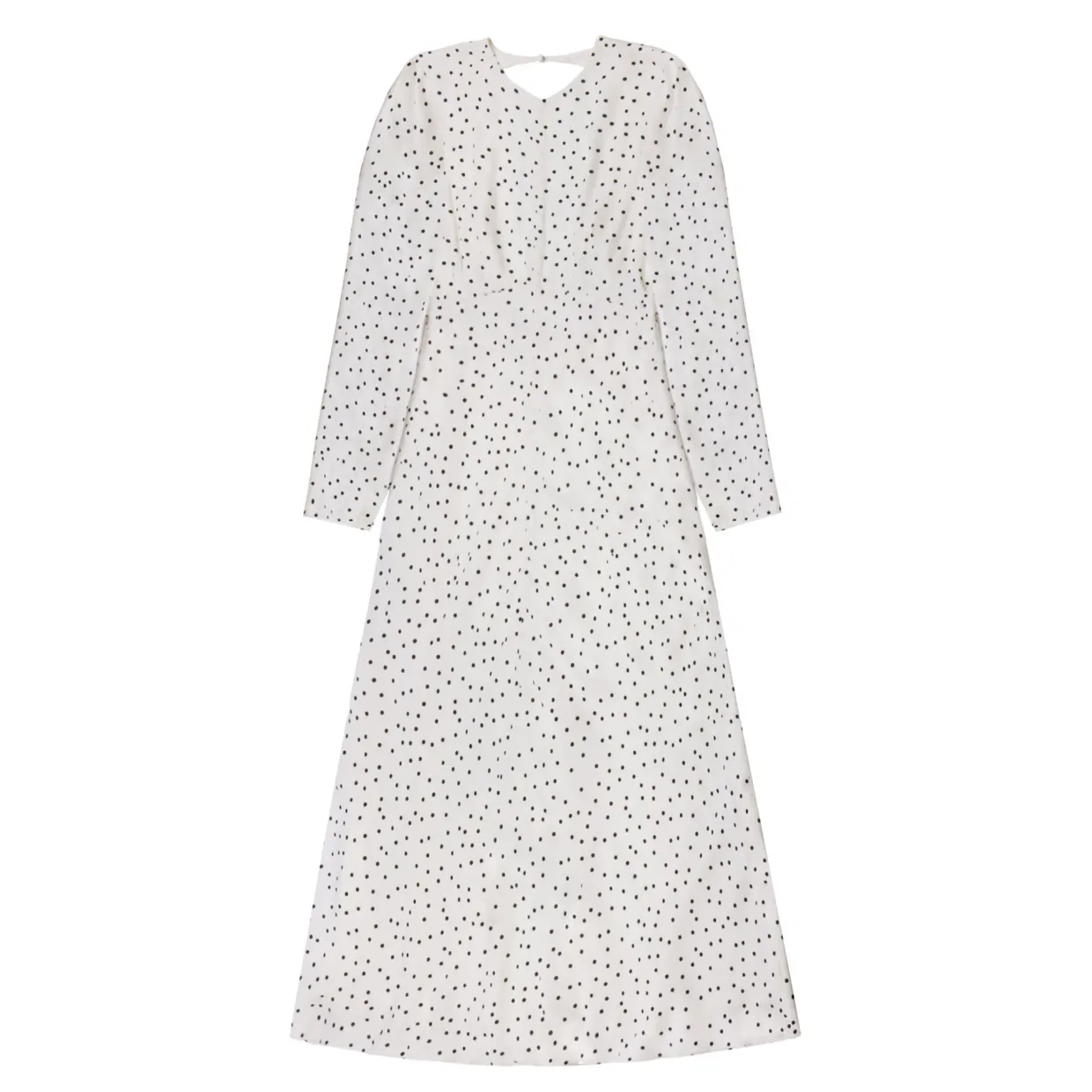 - Polka Dot print, tie back detail, woven, long sleeves, V-neckline