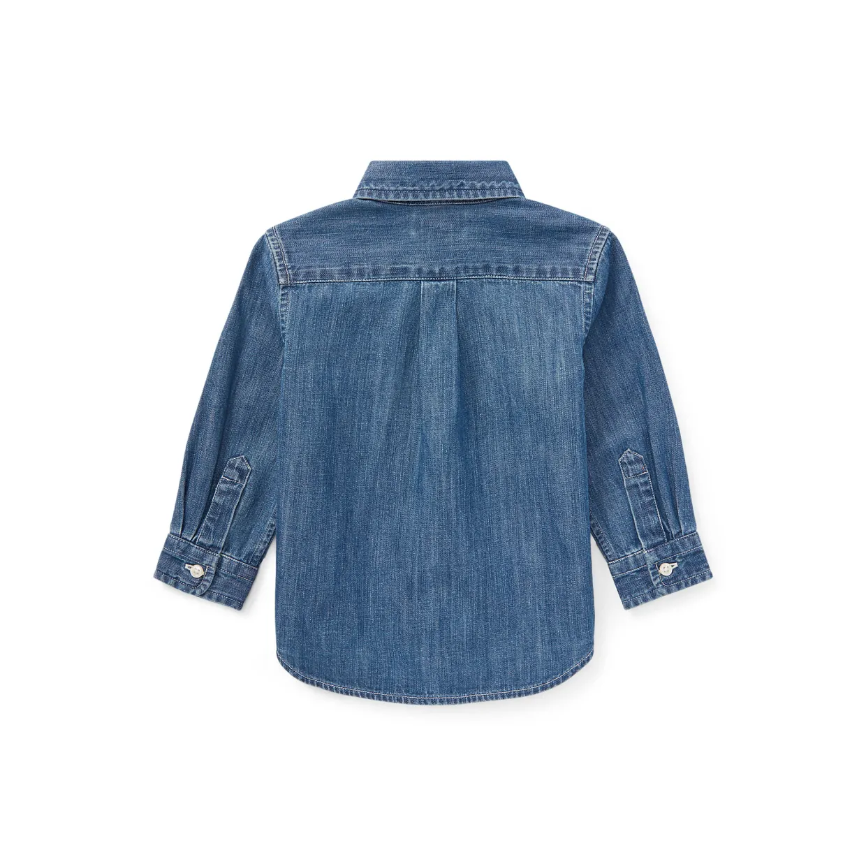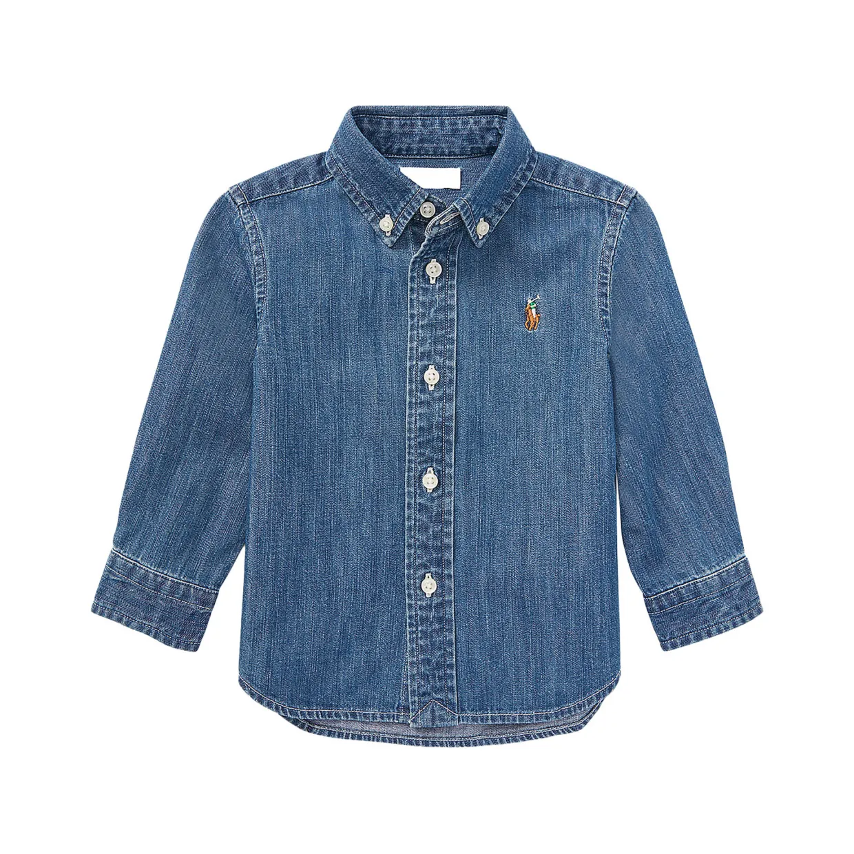 - Multi-coloured signature embroidered pony at the left chest, button-down point collar, buttoned placket, long sleeves with buttoned barrel cuffs, box-pleated back yoke