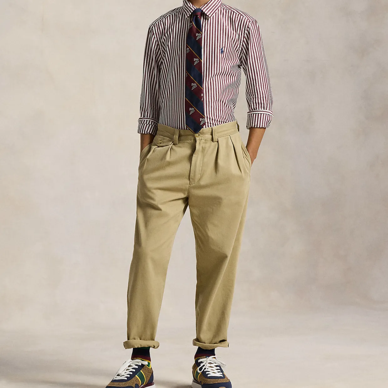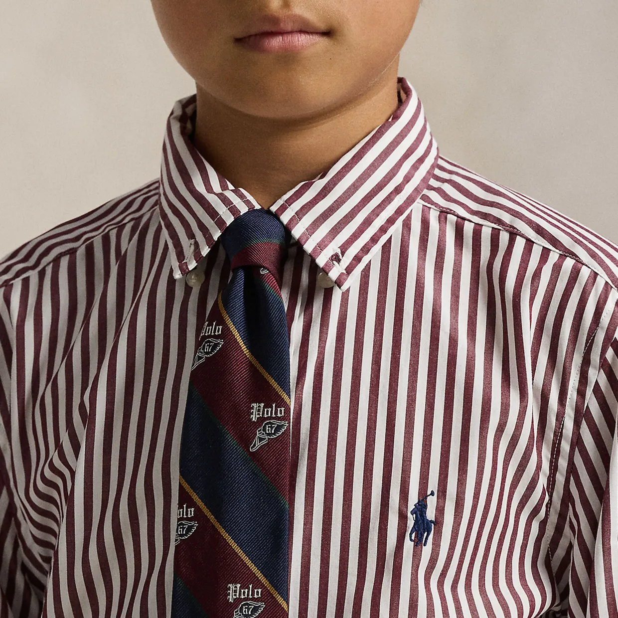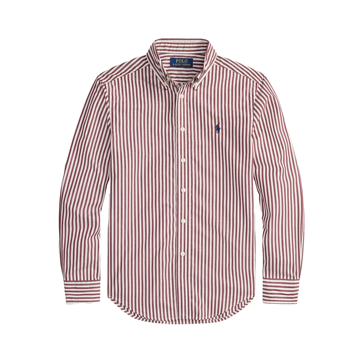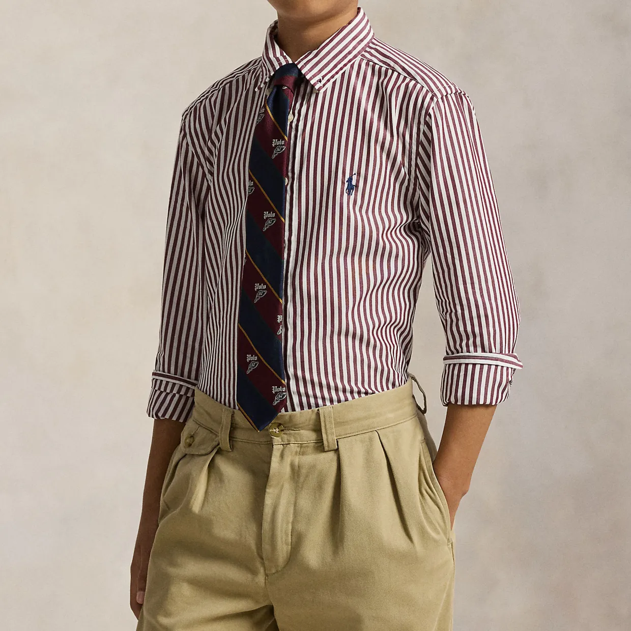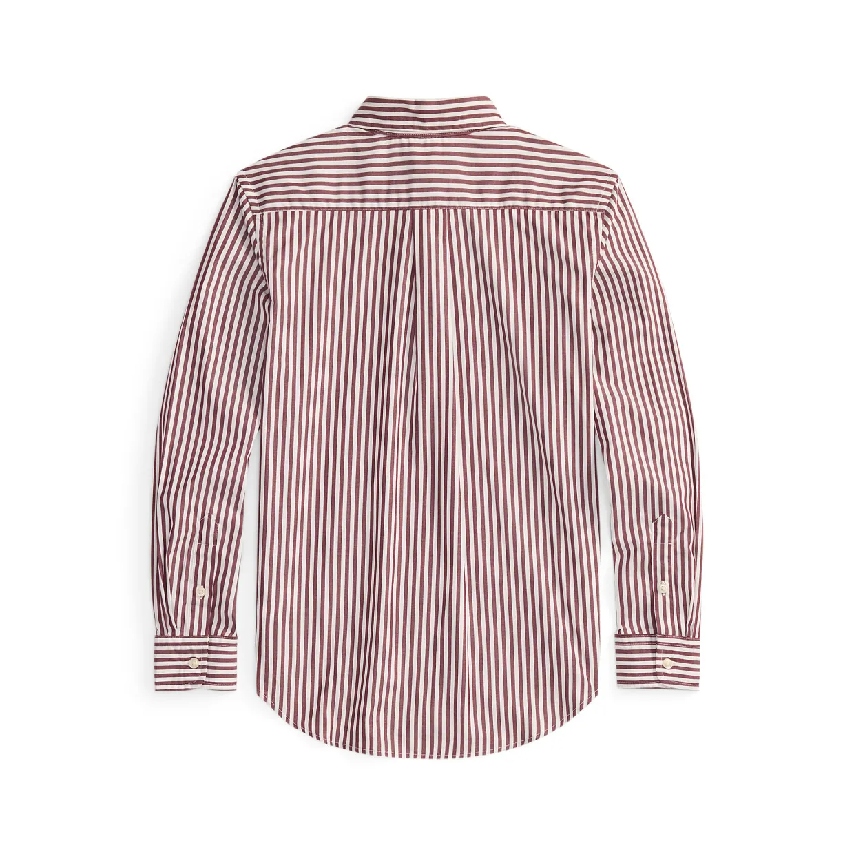 - Button-down collar, buttoned placket, long sleeves with buttoned barrel cuffs, box-pleated back yoke, signature embroidered pony at the left chest, striped
