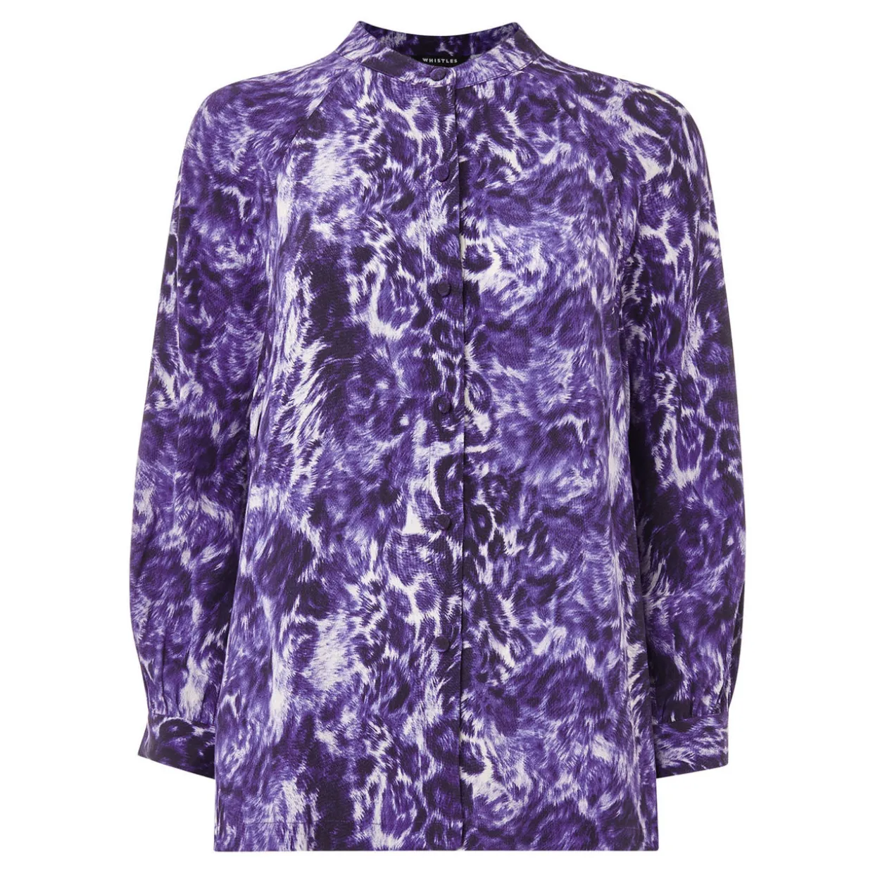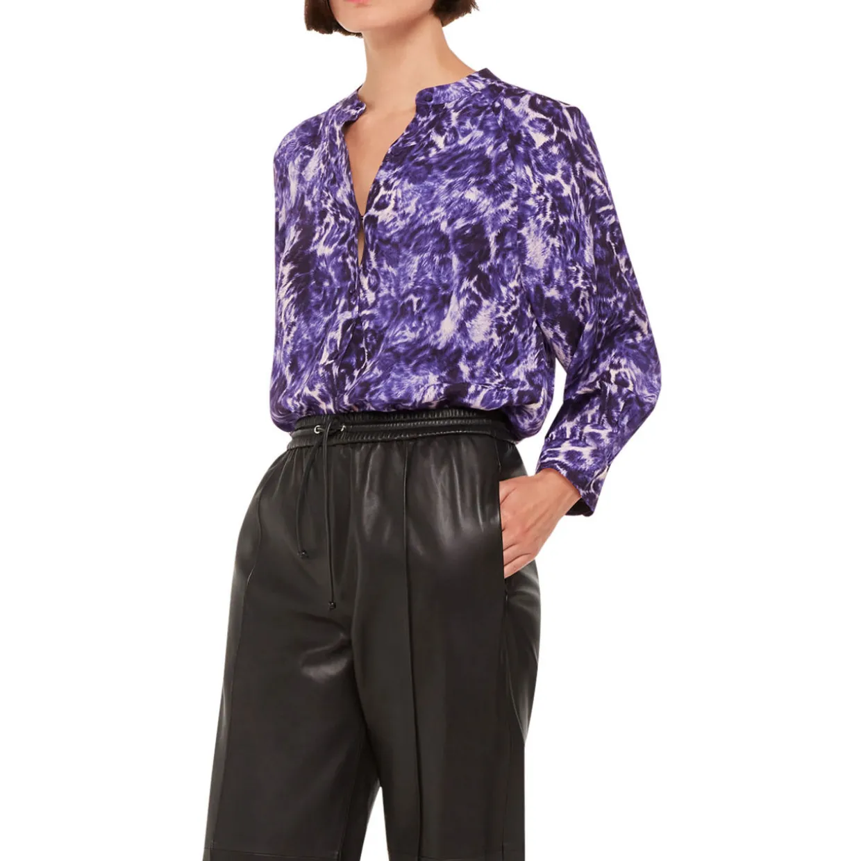 - Long sleeves, round neckline, button fastening, printed design, single-button cuffs, straight hemline, smooth fabric