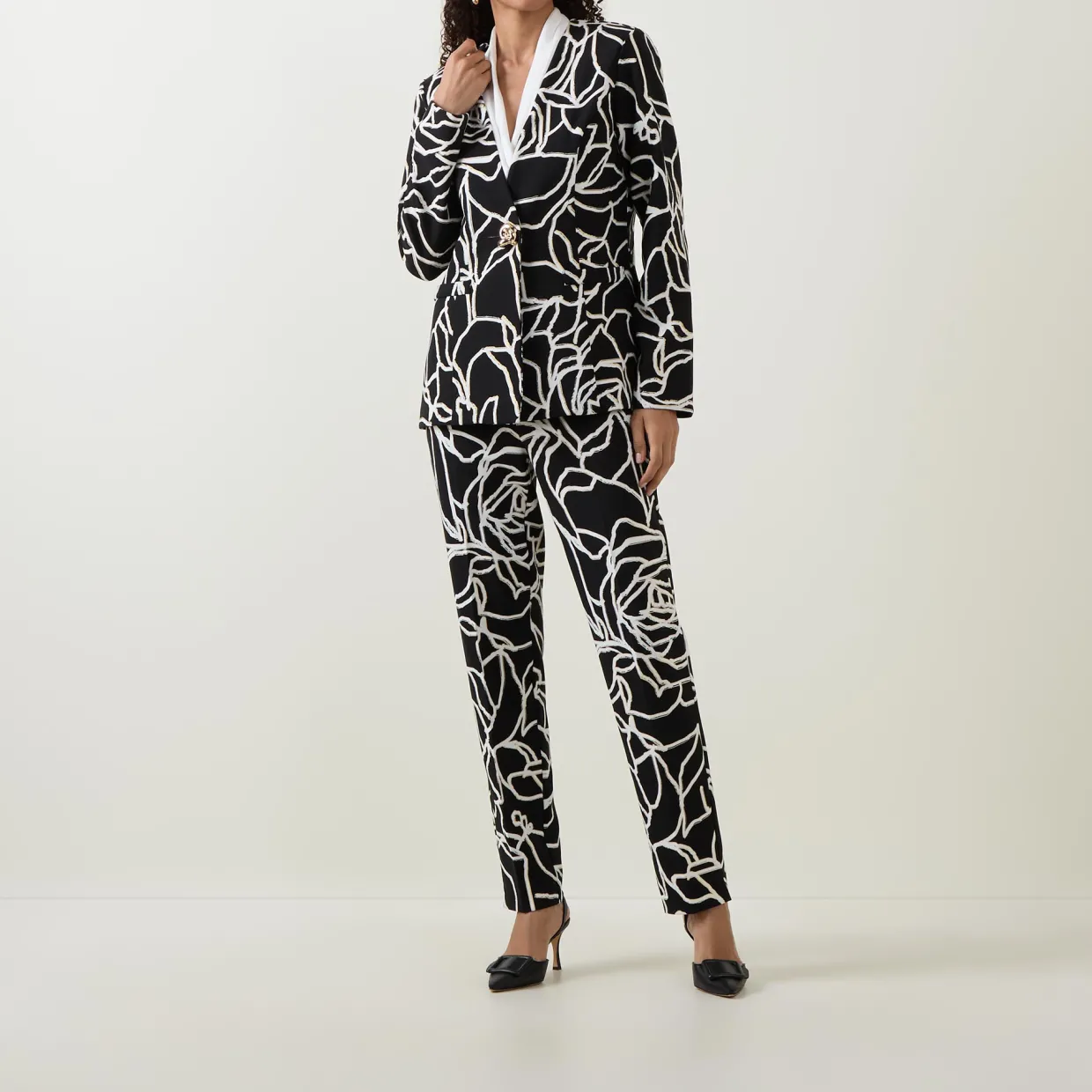 - Mid-rise, slim leg, covered waistband, clean hems, printed design, two-tone finish