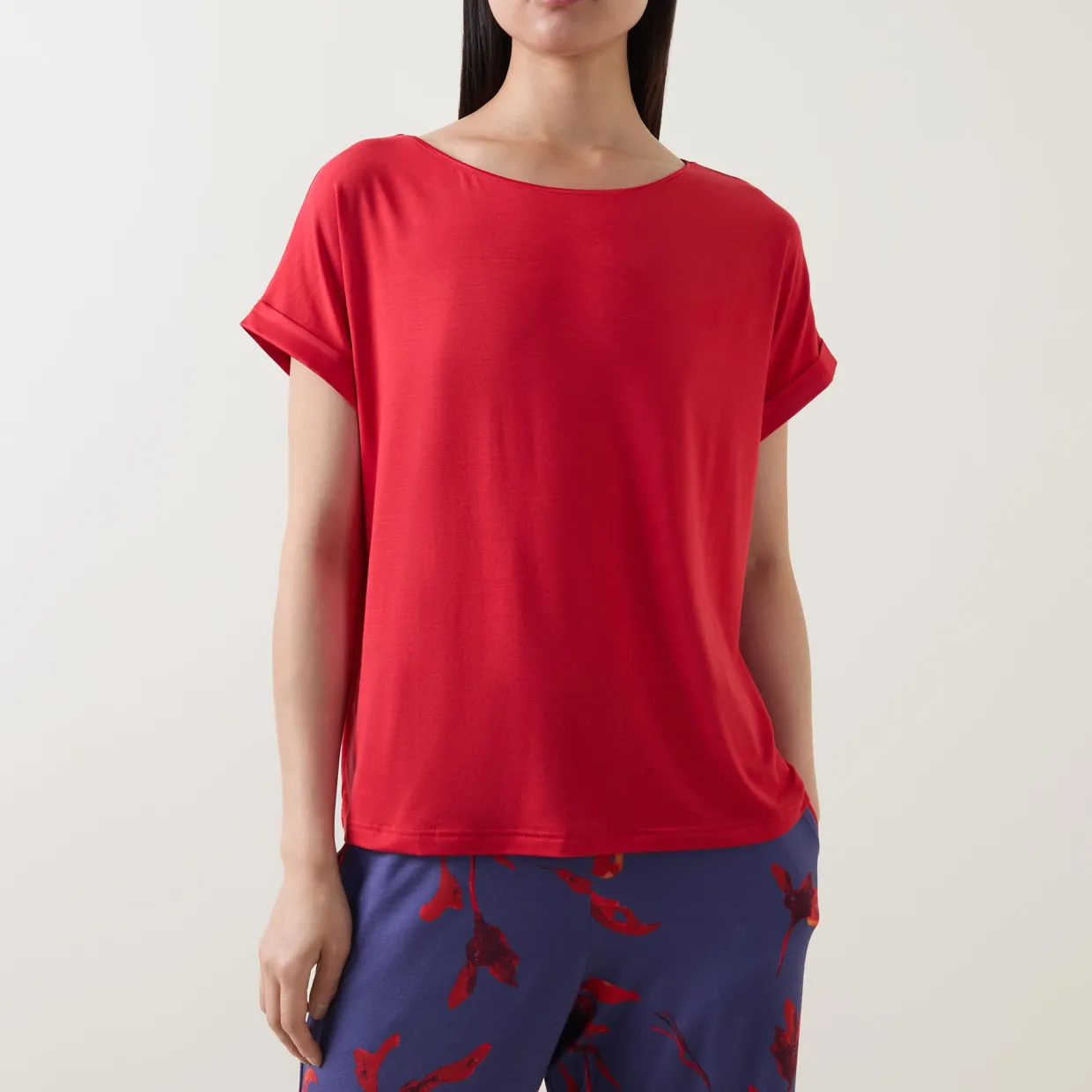 - Round neck, short sleeves, straight hem, tonal stitching, smooth jersey finish