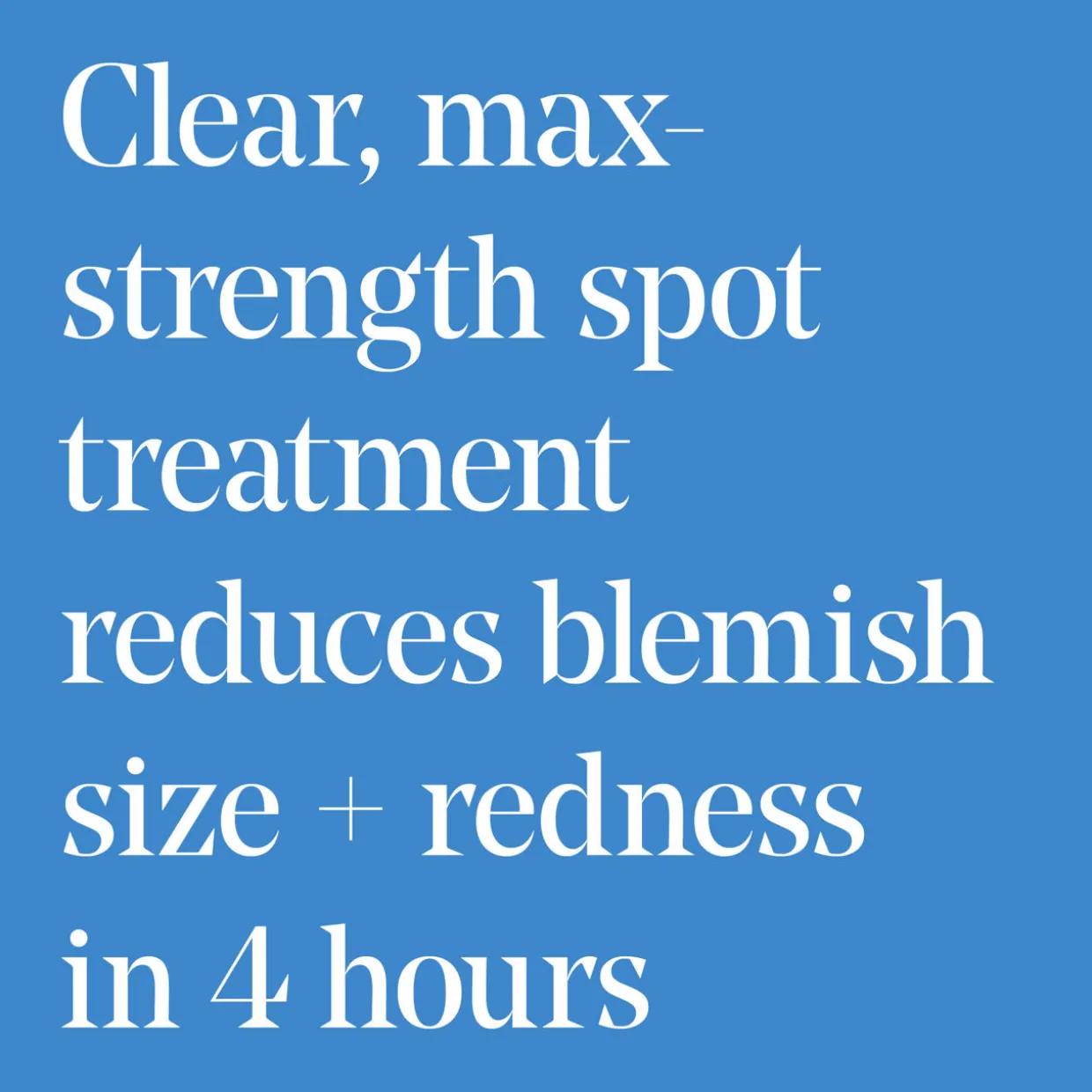 Maximum strength spot treatment reduces blemish size and redness within 4 hours. Salicylic acid exfoliates to clear pores and smooth skin. Horse chestnut and oat extracts soothe skin and reduce redness. Patented thyme and pine-inspired complex fights blemish-causing bacteria while preserving skins healthy balance.