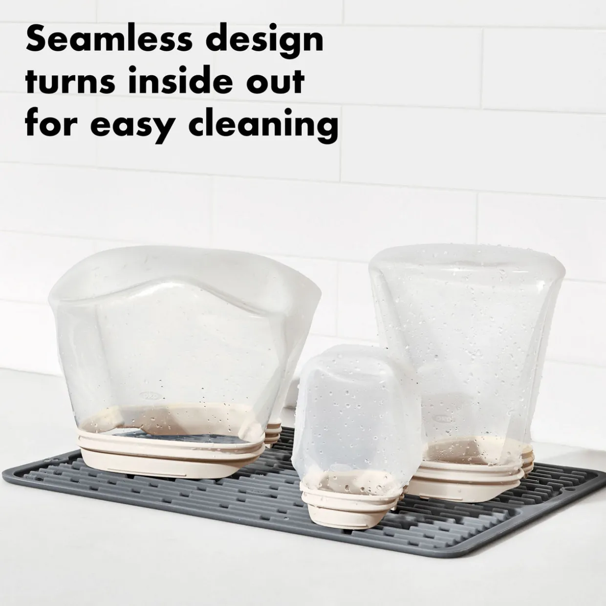 - Stand-up style, no seams, durable, can easily be turned inside out for thorough cleaning, dust-resistant finish to help repel unwanted dust and debris, secure closure to keep food fresh and prevent leaks, generous-sized tab for easy opening and closing, microwave safe, great for use with sous vide recipes