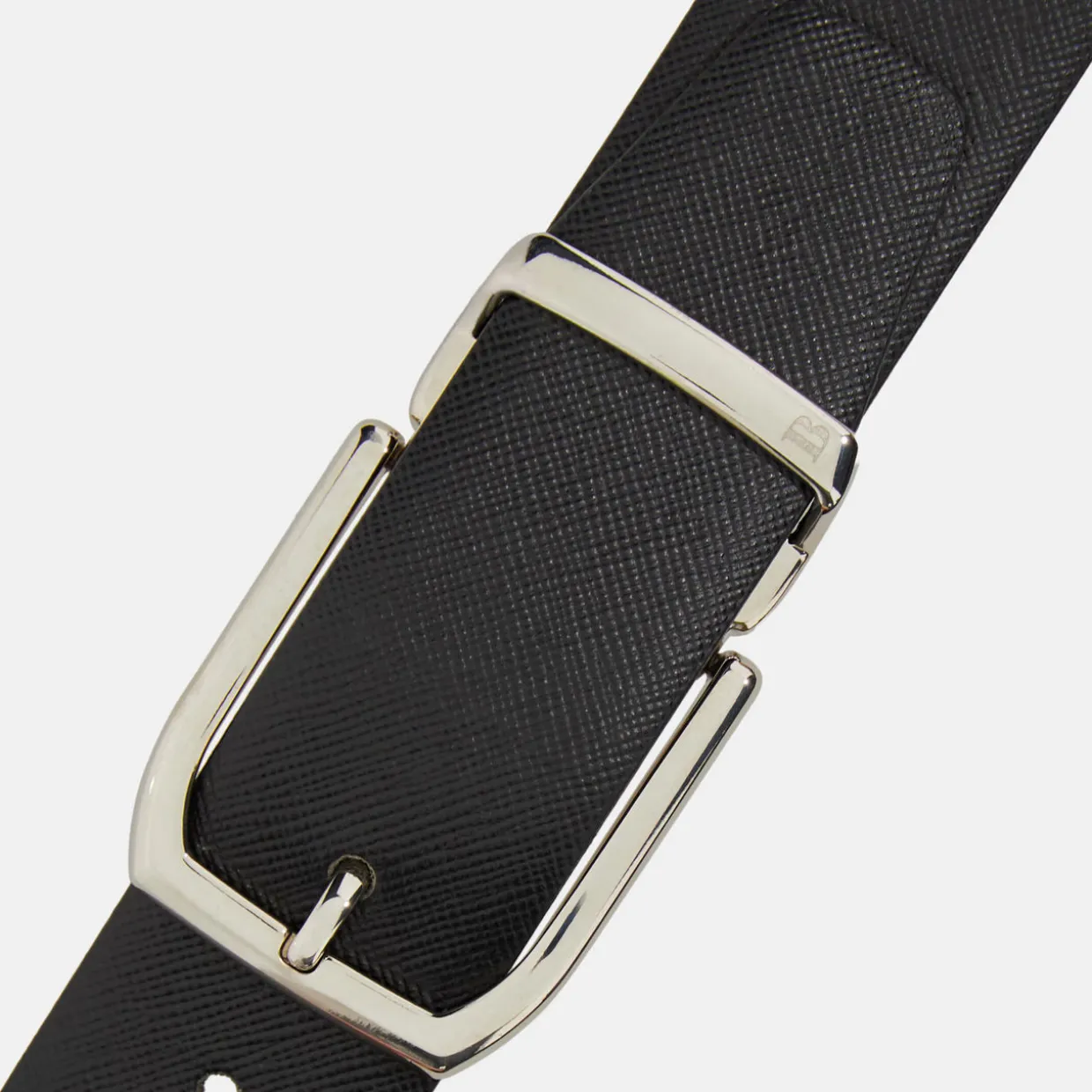 - Buckle fastening, adjustable, logo engraved keeper, silver-tone hardware, reversible design