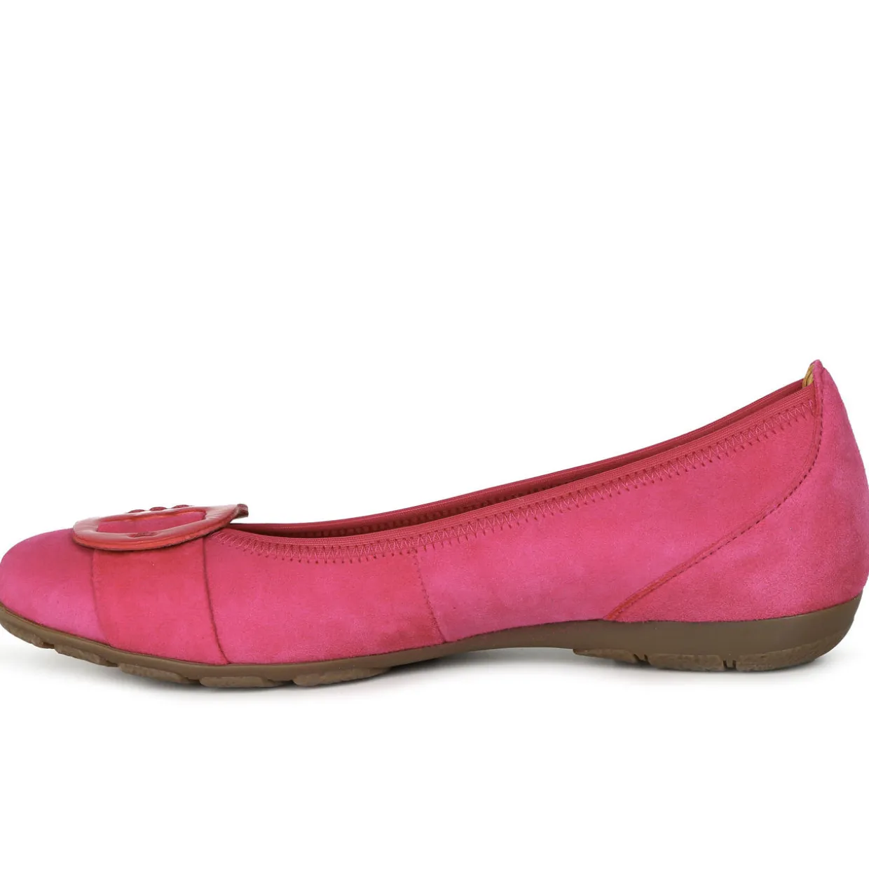 - Round toe, oversized buckle effect detail, tonal hardware, textured sole, slip on silhouette, suede finish
