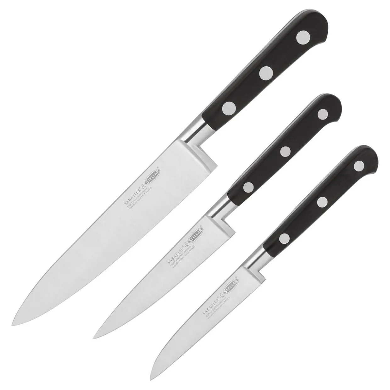 - Each knife is forged from professional-grade stainless steel for superb performance, secure spun solid handle rivets