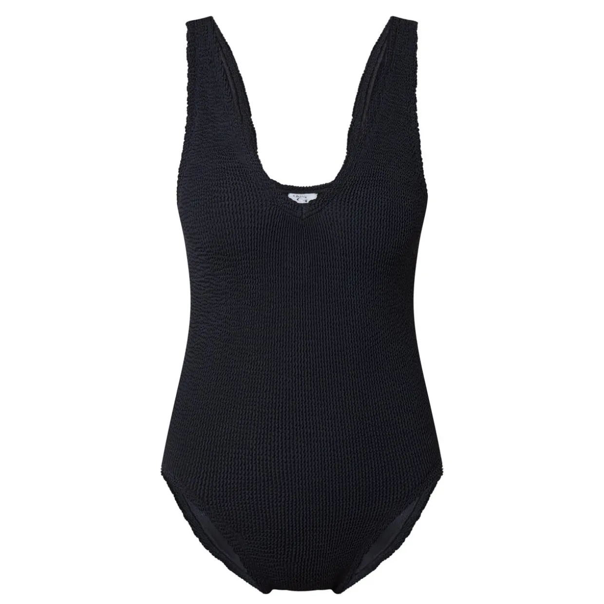 - Plunging neckline, wide straps, medium bust support, low-cut back, high leg line, classic coverage, stretch fit, The Original Crinkle™ fabric