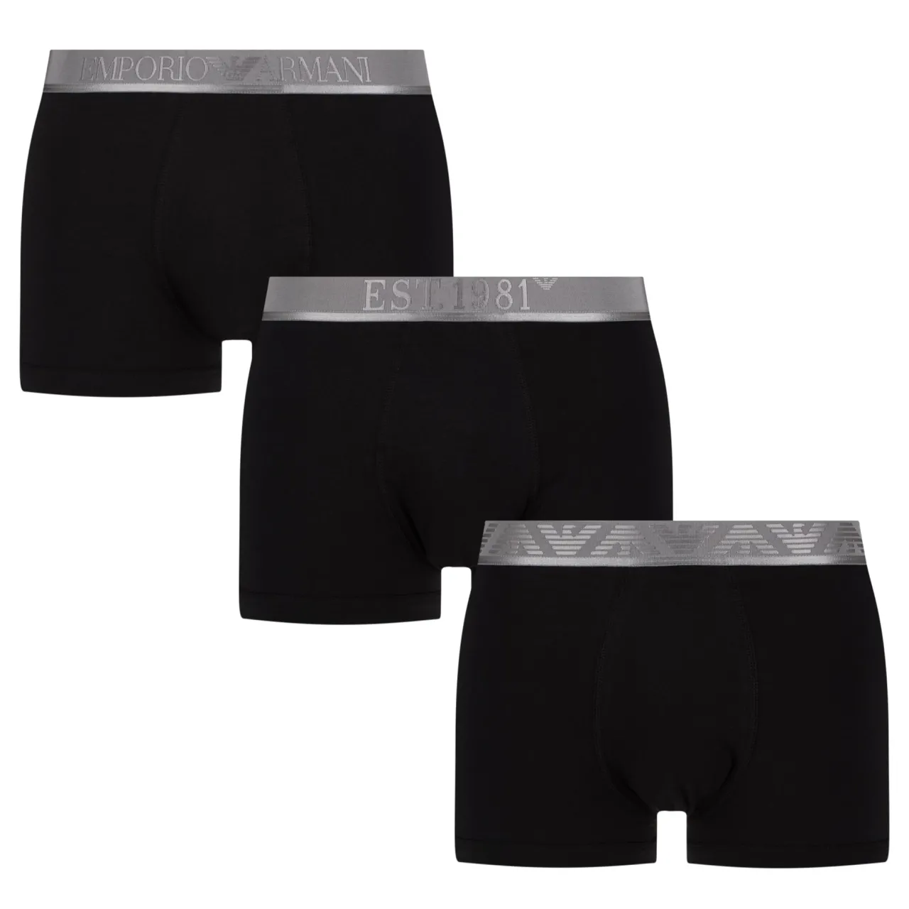 - Pack of three, assorted pattern at elasticated waistband, logo details, trunk style, stretch-fused fabric
