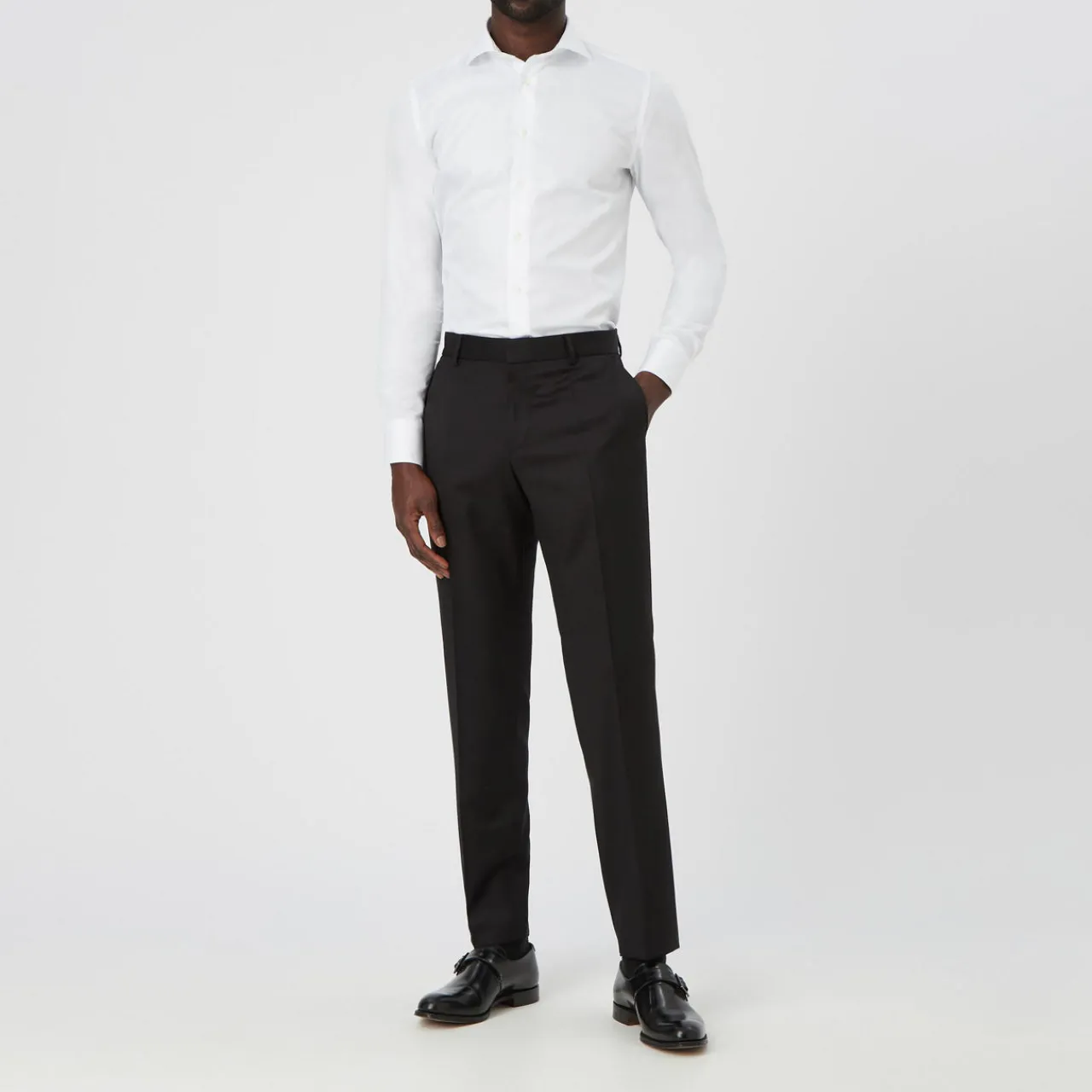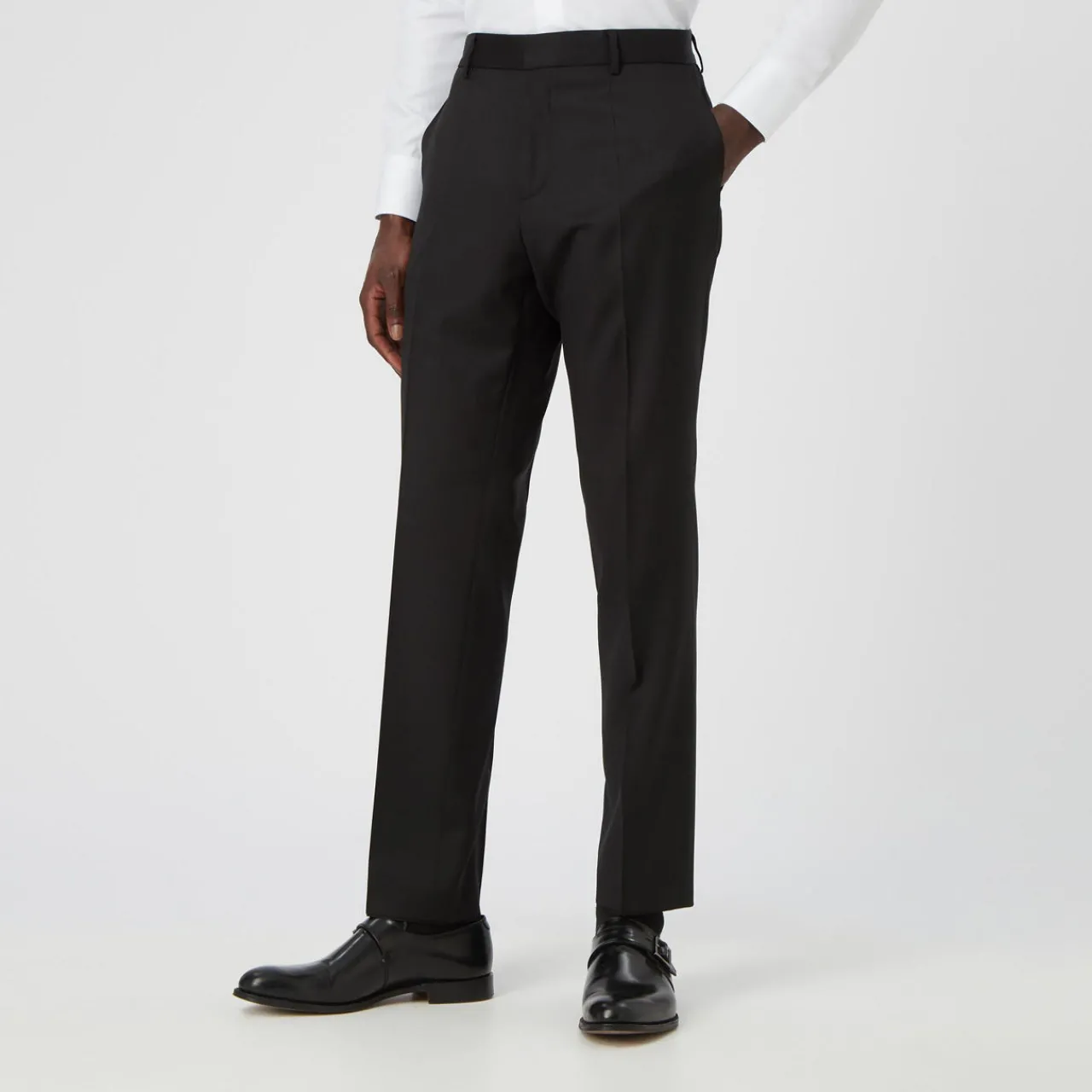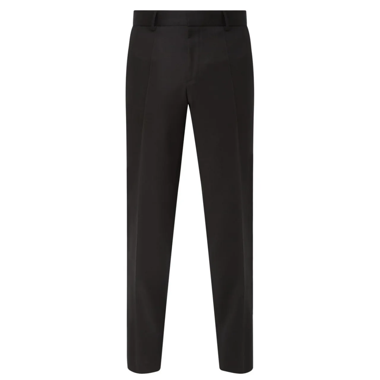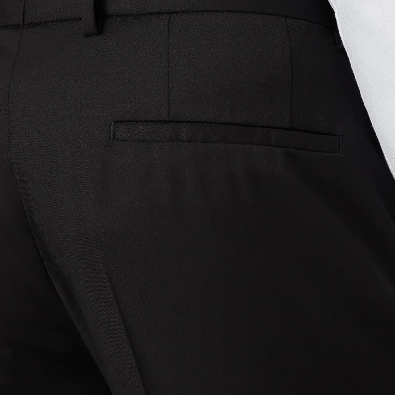 - Slim fit, mid-rise, hook and zip fastening, straight leg, flat front, side and back pockets.
