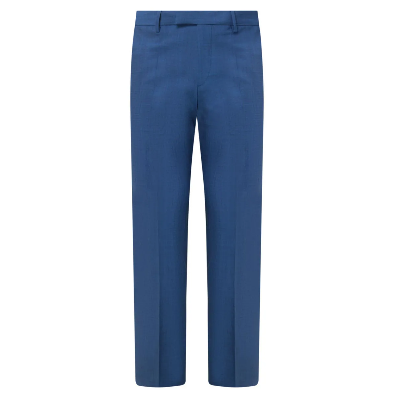 - Concealed zip-fly and hook-and-bar fastening, belt loops, four-pocket design, pressed creases, mid-rise, straight-cut leg, smooth fabric