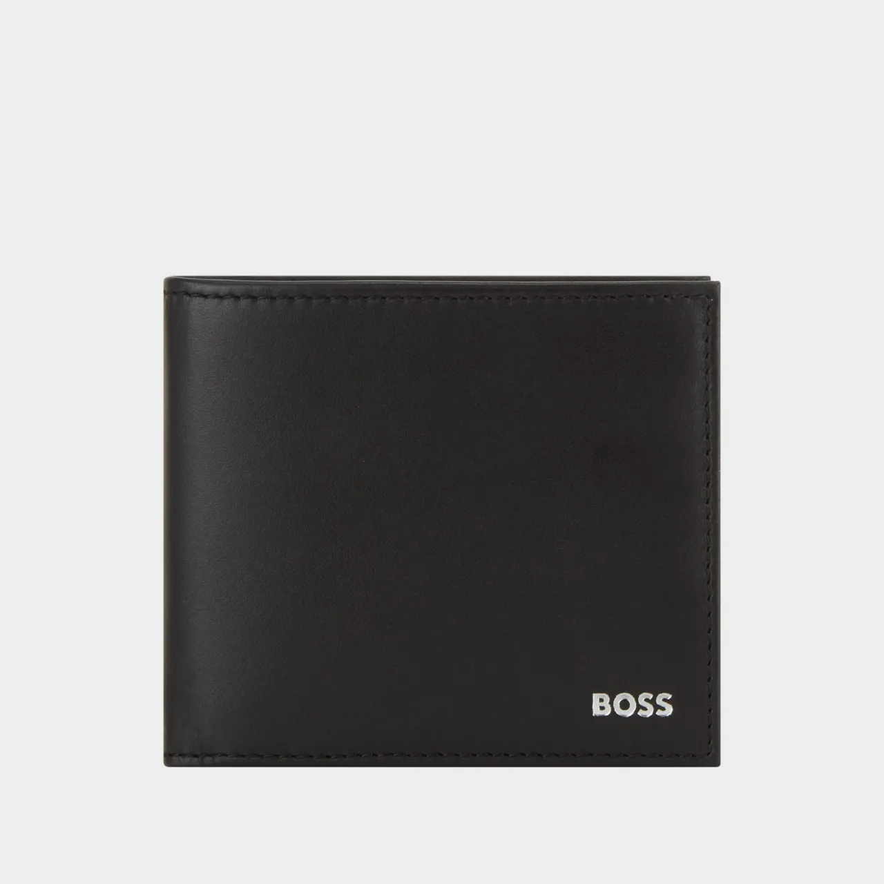 - Billfold style, front logo lettering, tonal stitching, smooth leather finish
