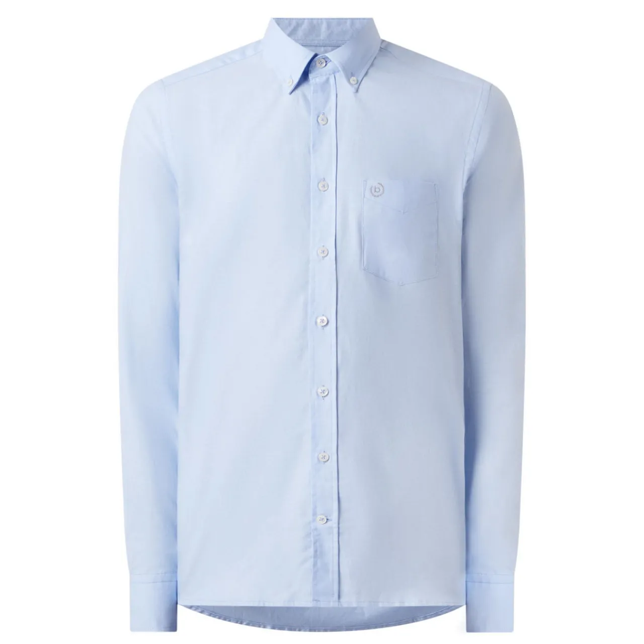 - Button-down collar, long sleeves, button fastenings, curved hem, chest pocket