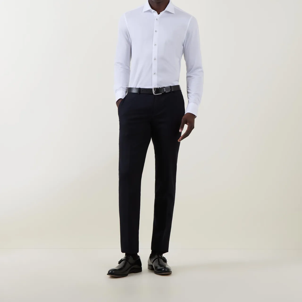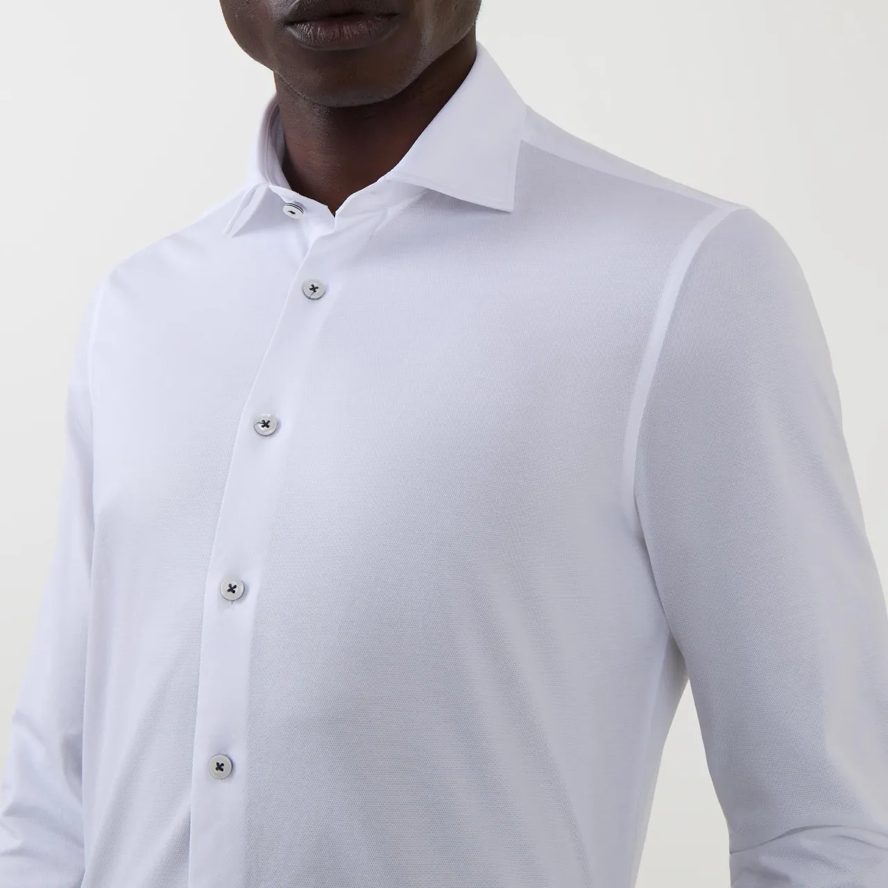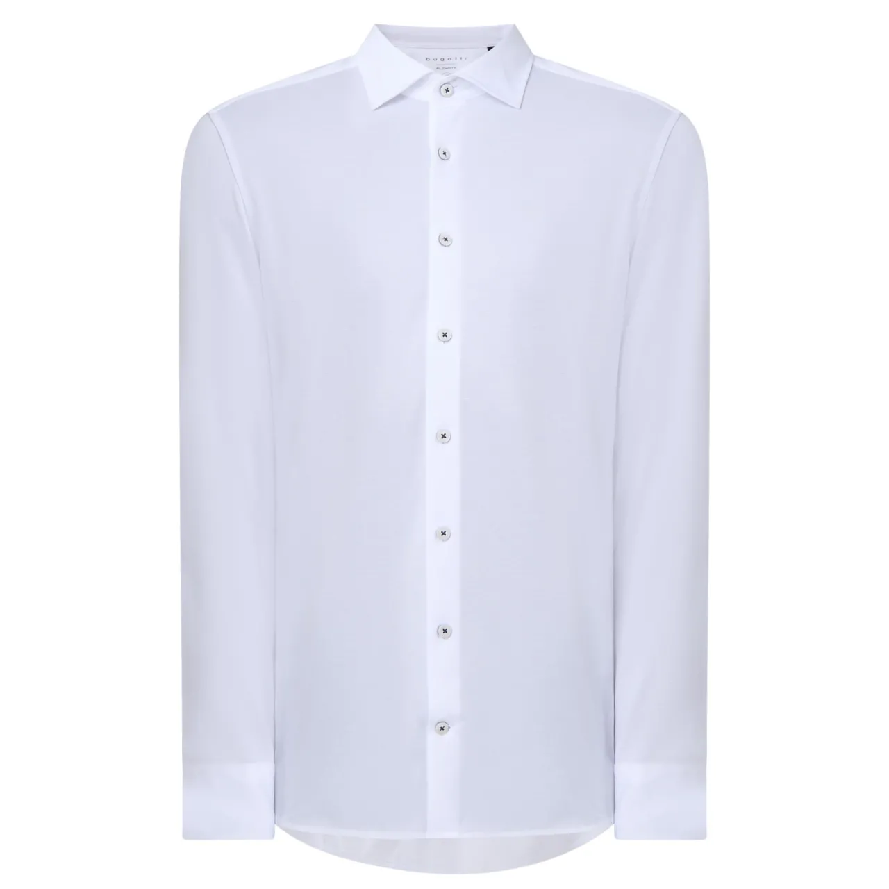 - Single cuff, long sleeves, curved hemline, pointed collar, button fastenings