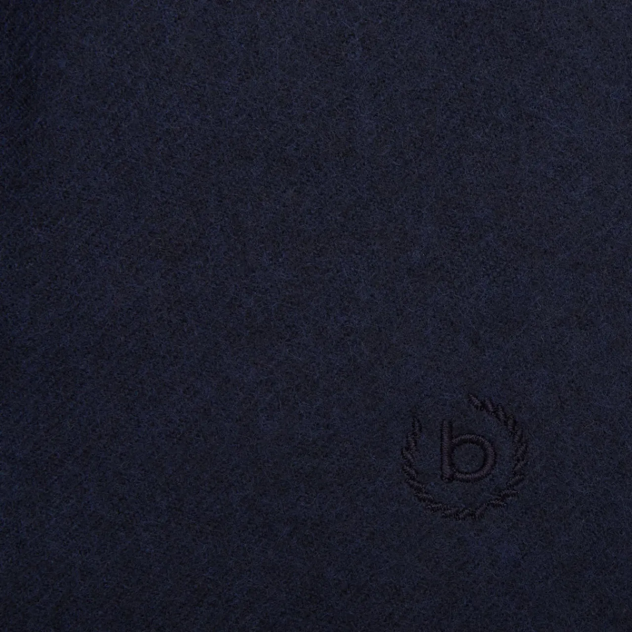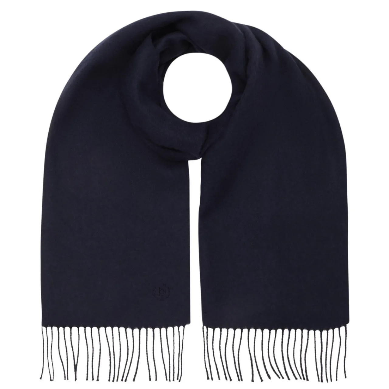 - Wrap style, tassel details, tonal logo embroidery, smooth wool fabric