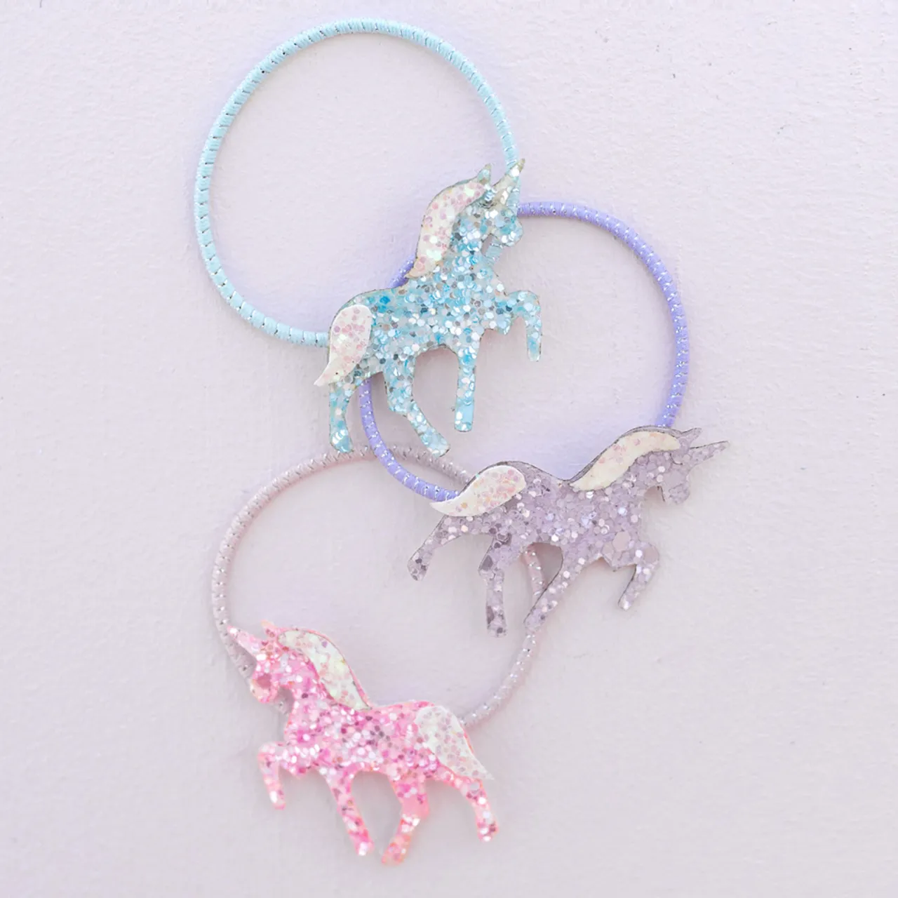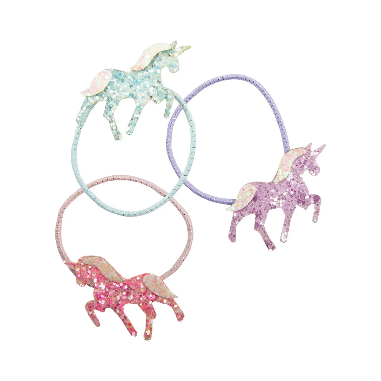 - Set of three hair ties, assorted colours, pony details