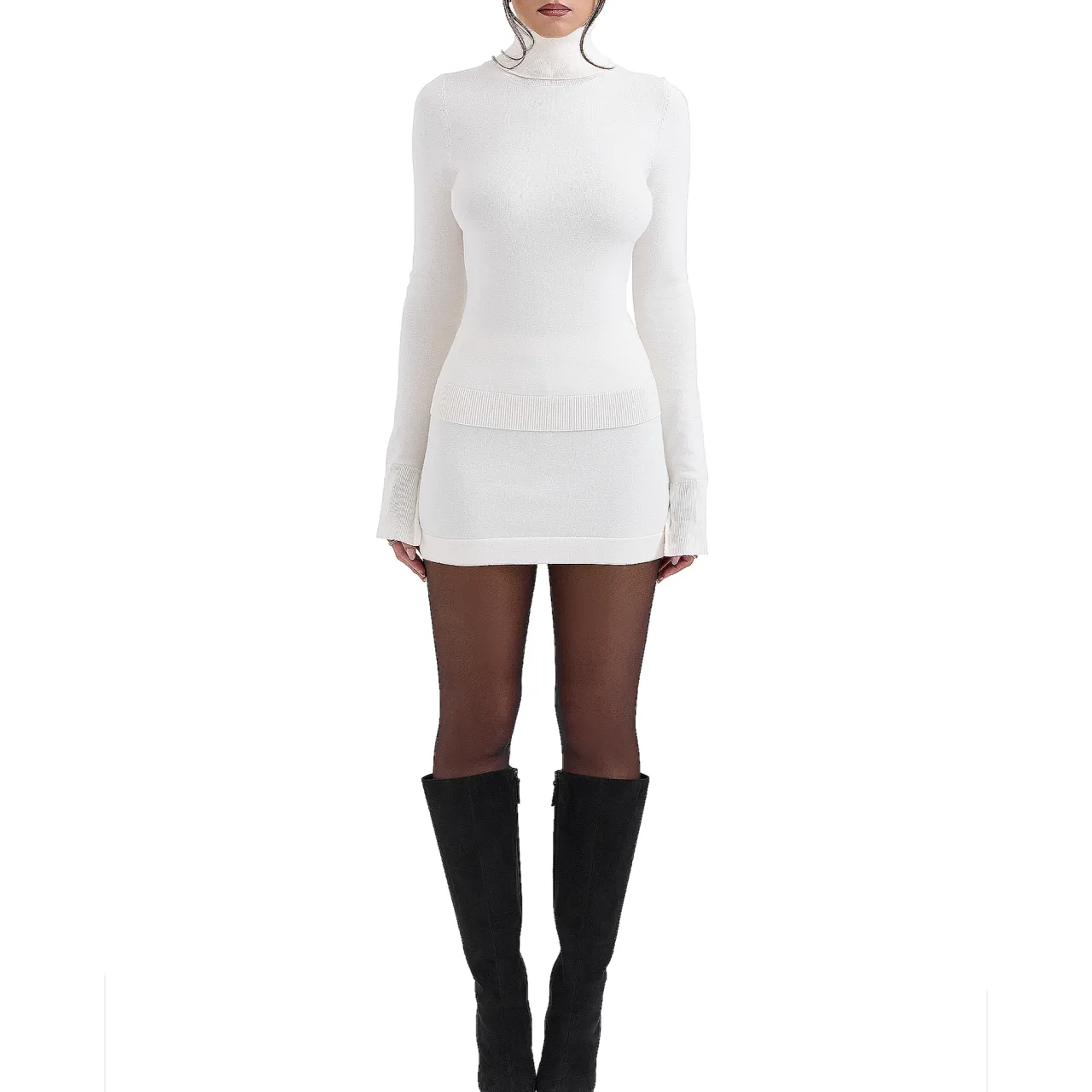 - A-line silhouette, slip-on style, mini length, cotton and cashmere blend