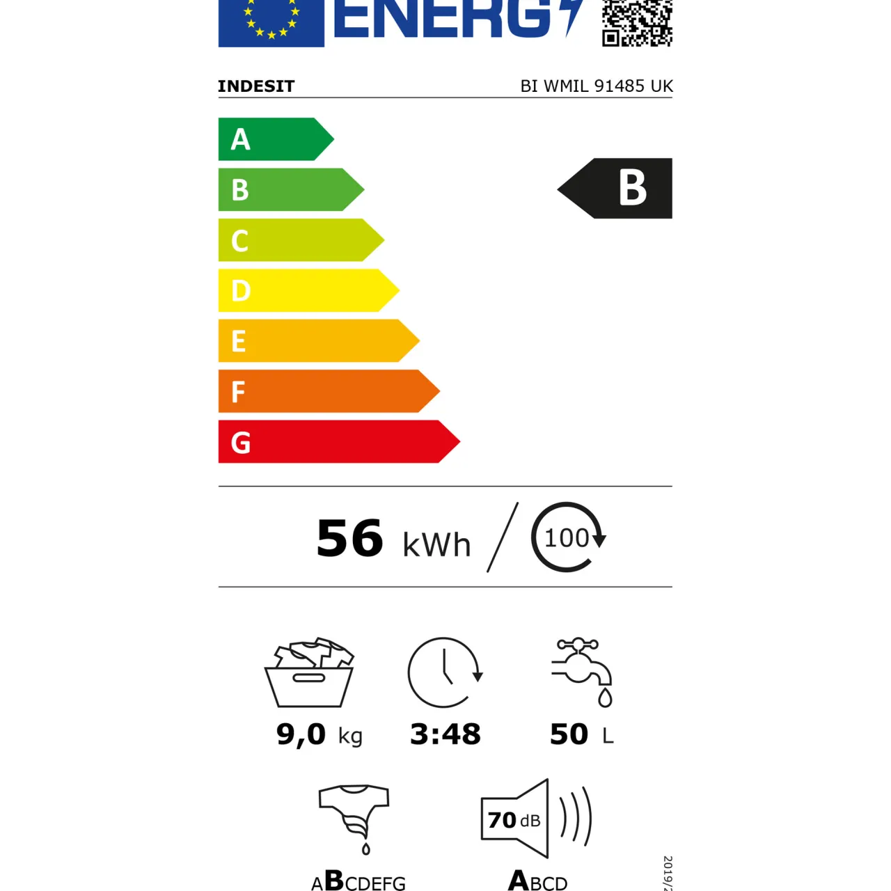 - Spin-drying efficiency class:B