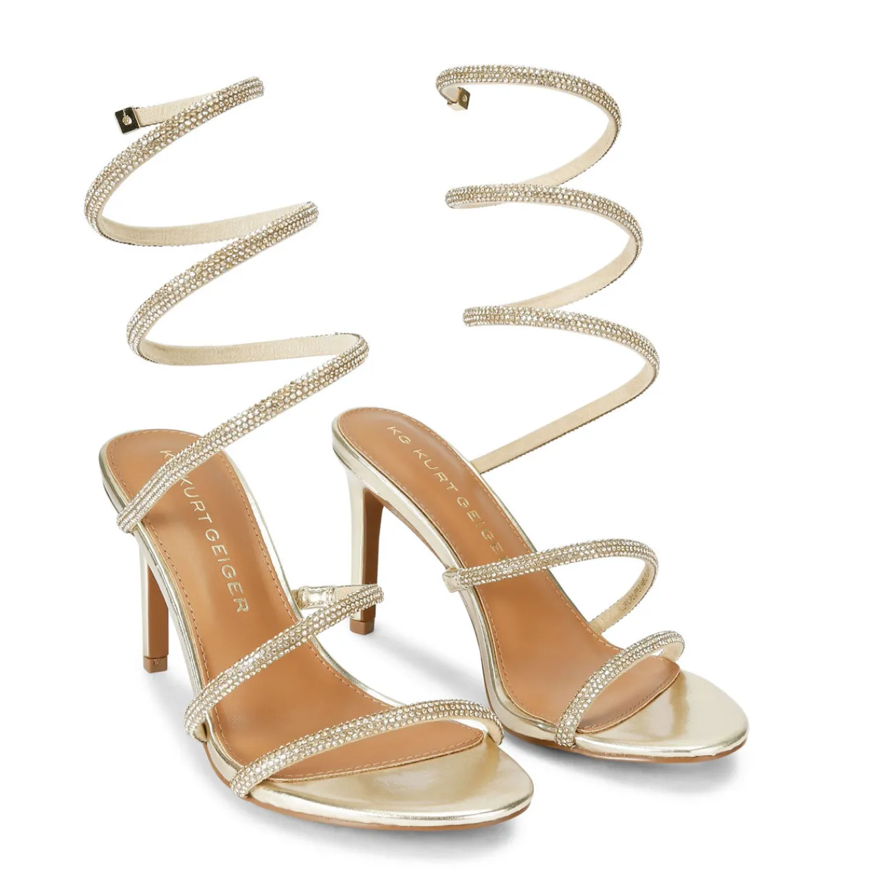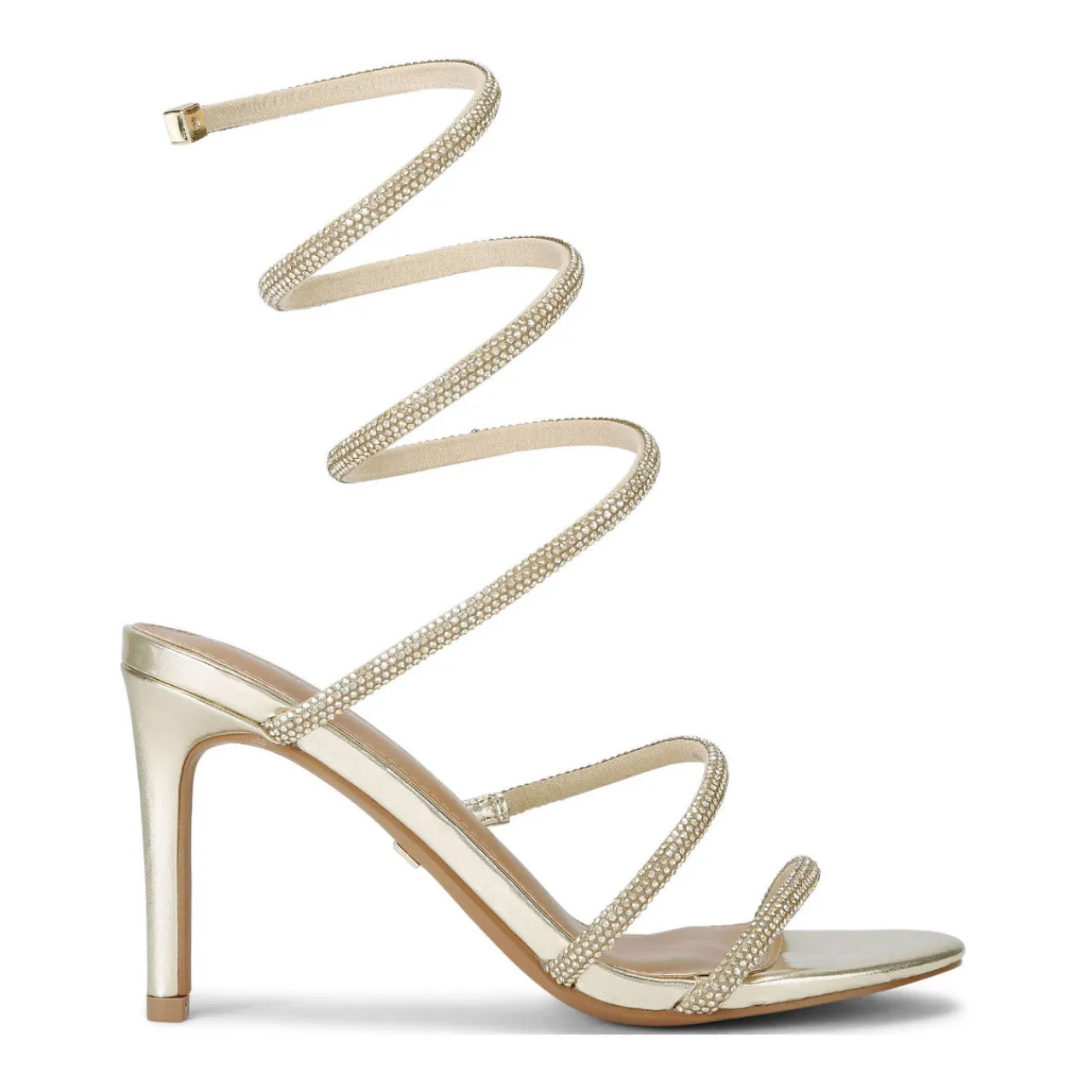 - High stiletto heel, crystal-embellished spiral ankle strap