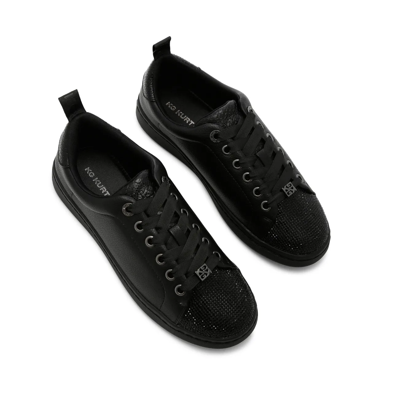 - Crystal-embellished detailing, lace-up front, gunmetal eyelets, gunmetal brand charm