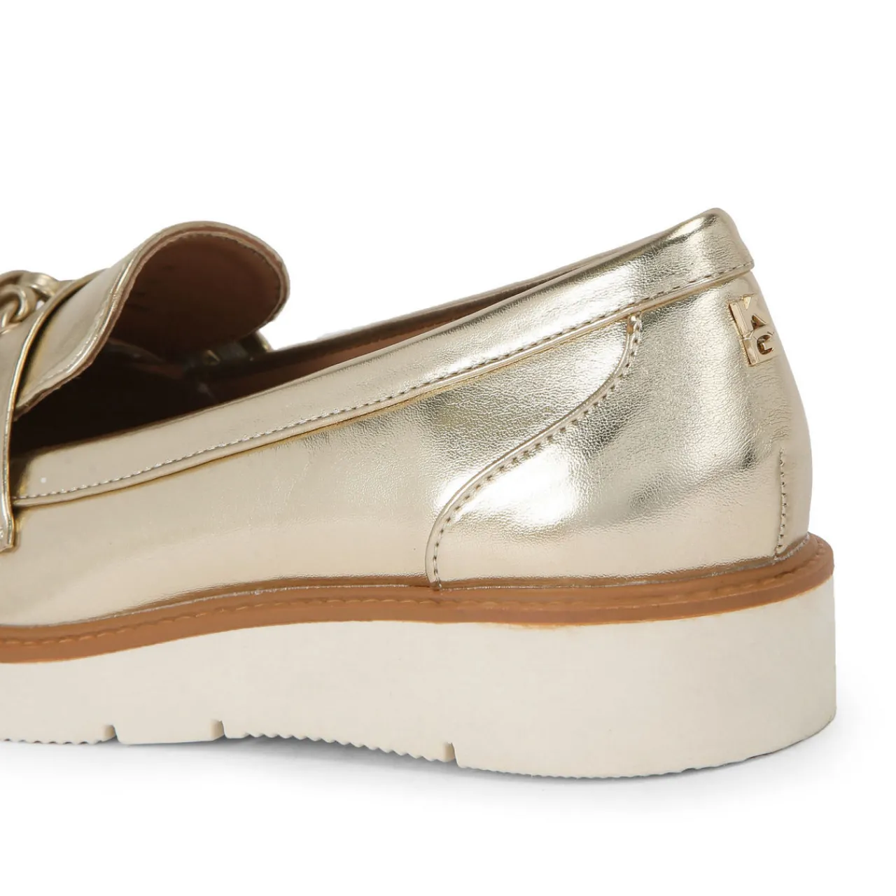 - Metallic finish, tassel detail, rubber sole, contrast midsole, round toe, slip-on style