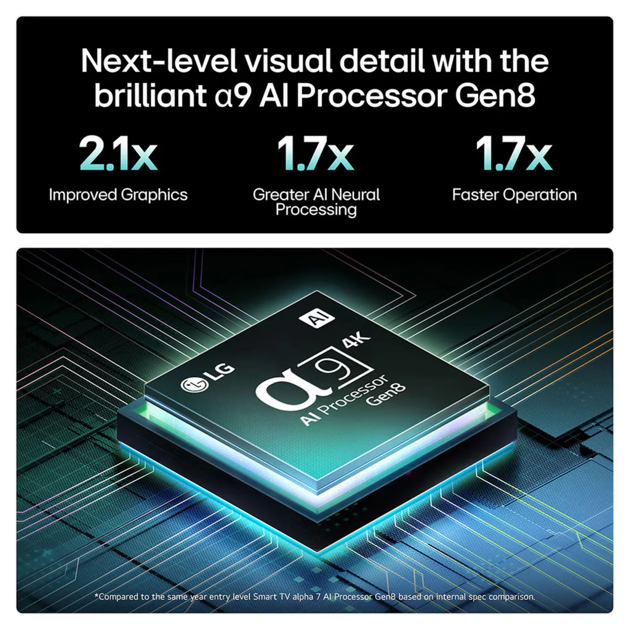 - α9 AI Processor 4K Gen7 – Real-time scene optimisation for sharp, vibrant visuals and immersive sound.