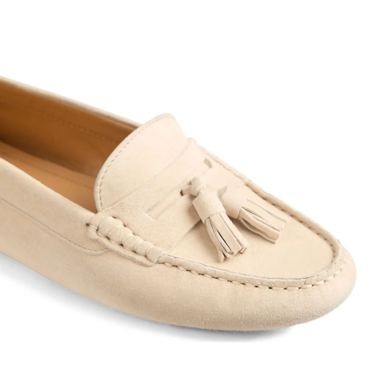 - Almond-shaped toe, loafer design, tassel detail, pebbled finish, tonal stitching, slip-on style