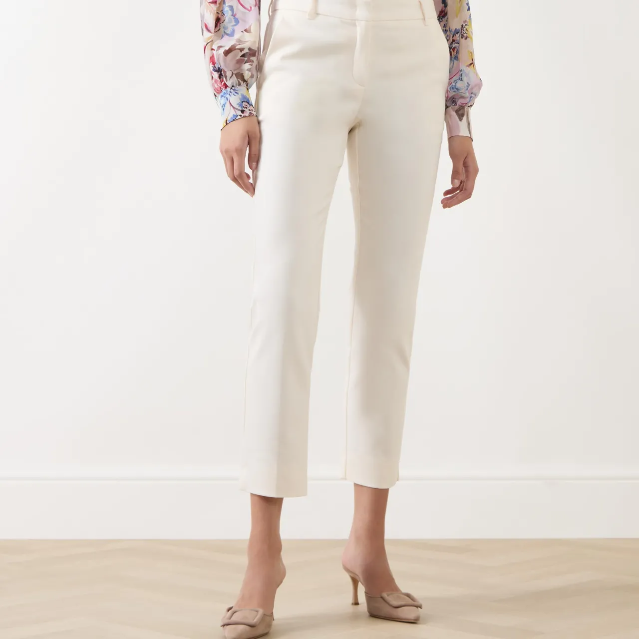 - Slim fit, cropped length