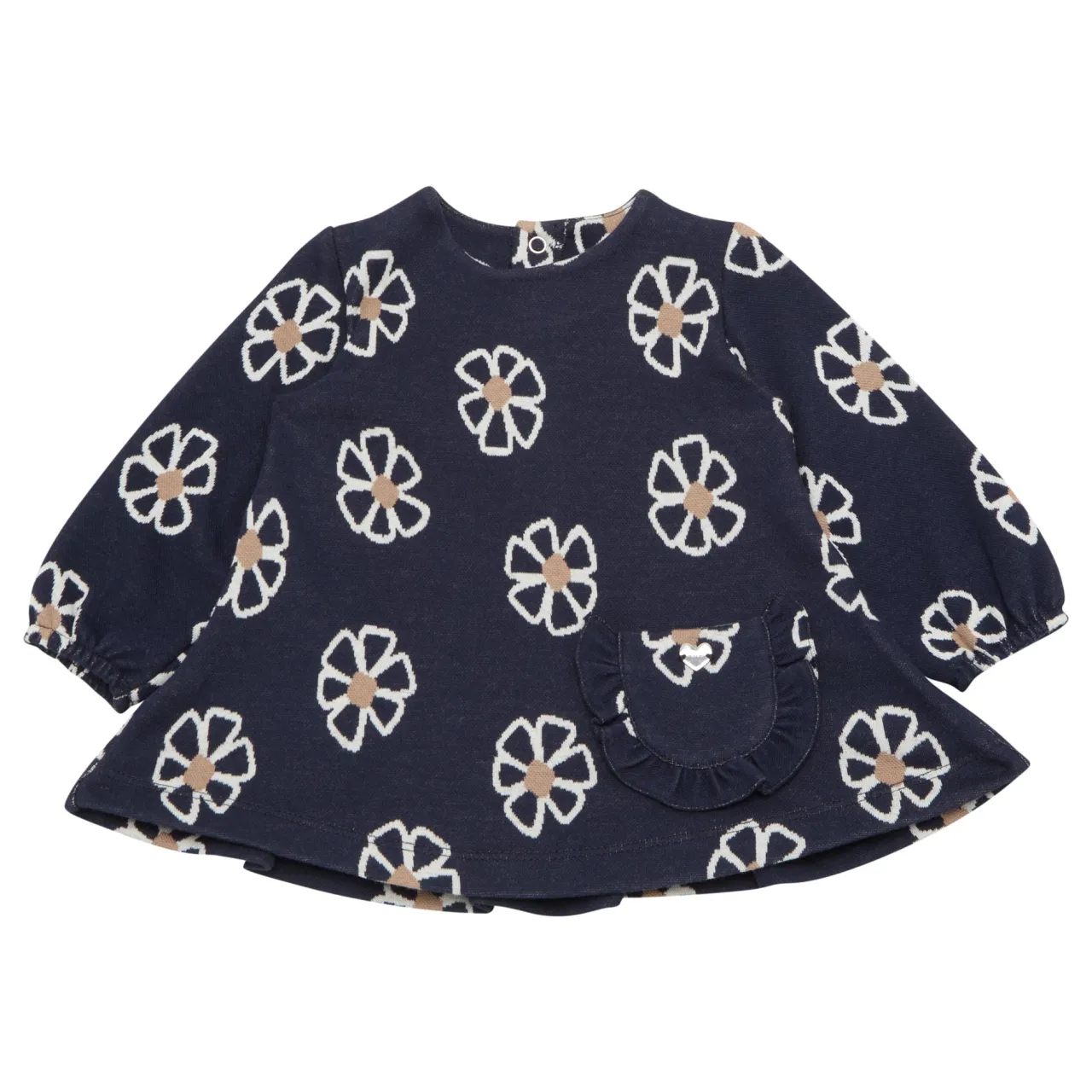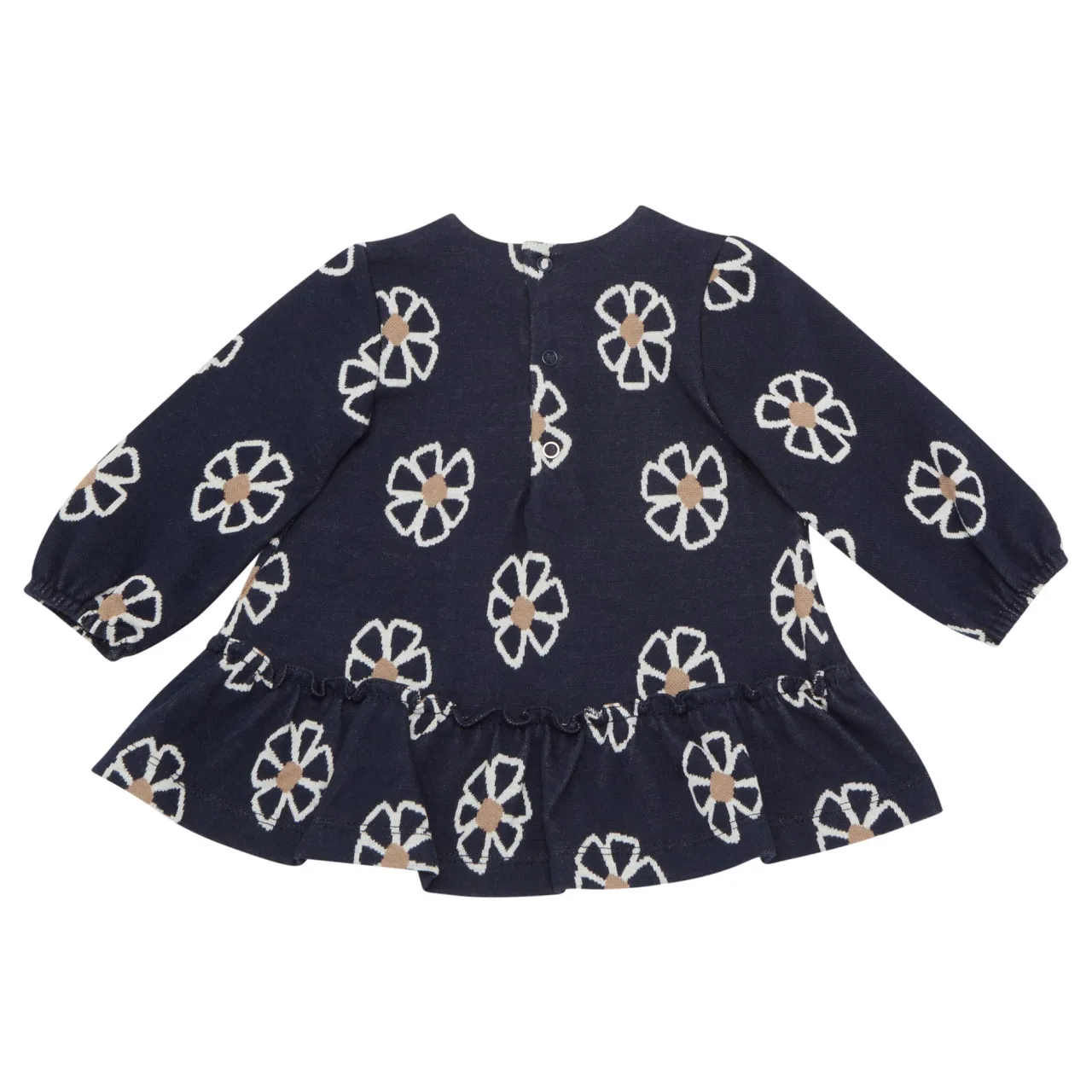 - Round neckline, long sleeves, floral print, snap buttons