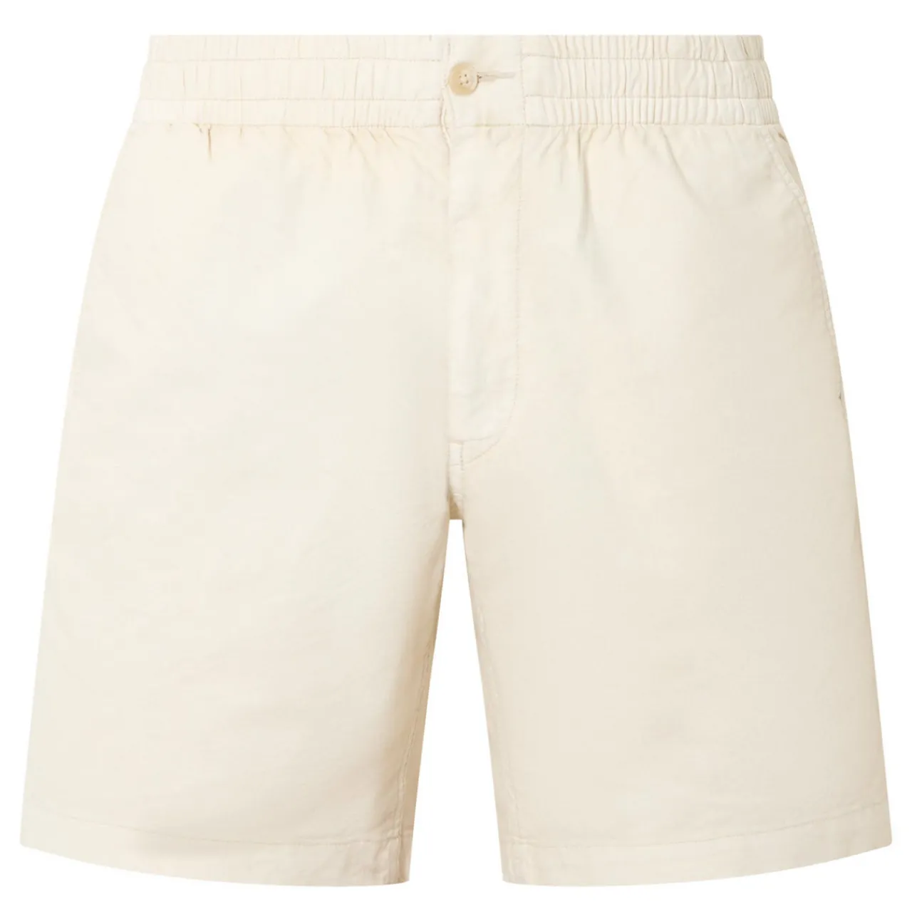 - Mid-rise, straight leg, elasticated waistband, concealed fly and button fastening, two side entry pockets, one rear flap pocket and one rear welt pocket with button fastenings, clean hems, rear polo player logo embroidery, mineral-dyed finish