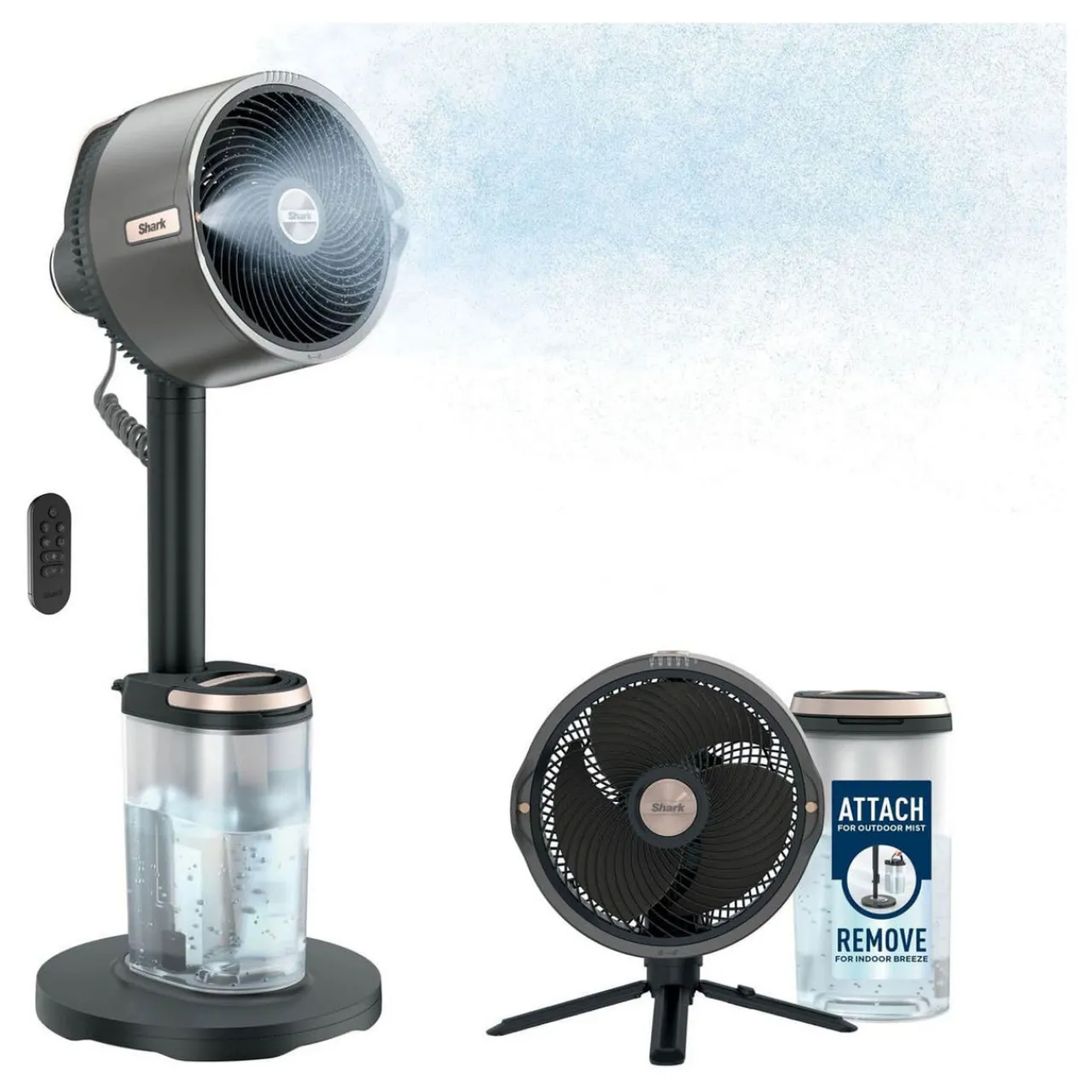 No hose required, no unsightly water buckets. Shark’sportable, removable MistPro Tankallows you to mist outdoors in both pedestal and tabletop modes.