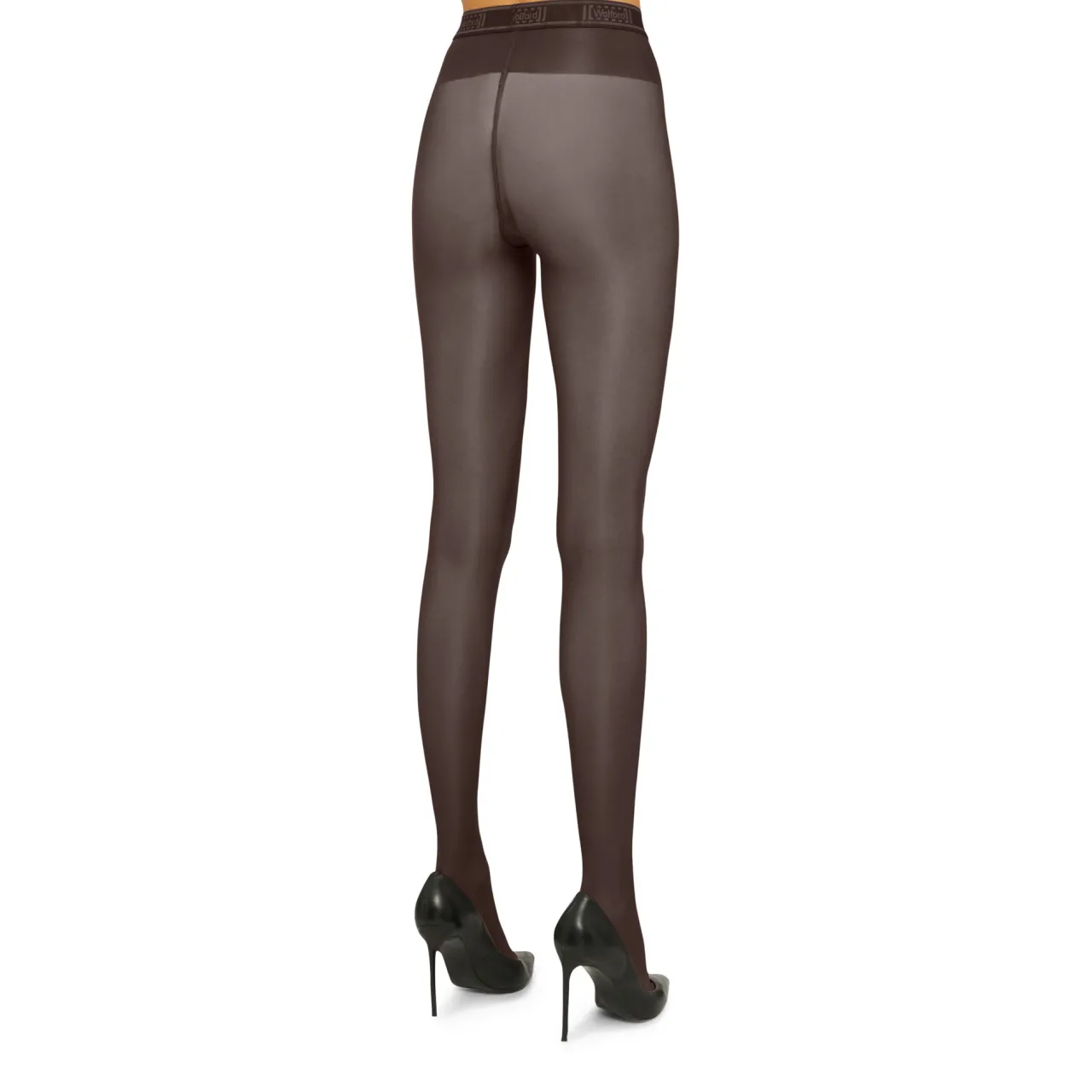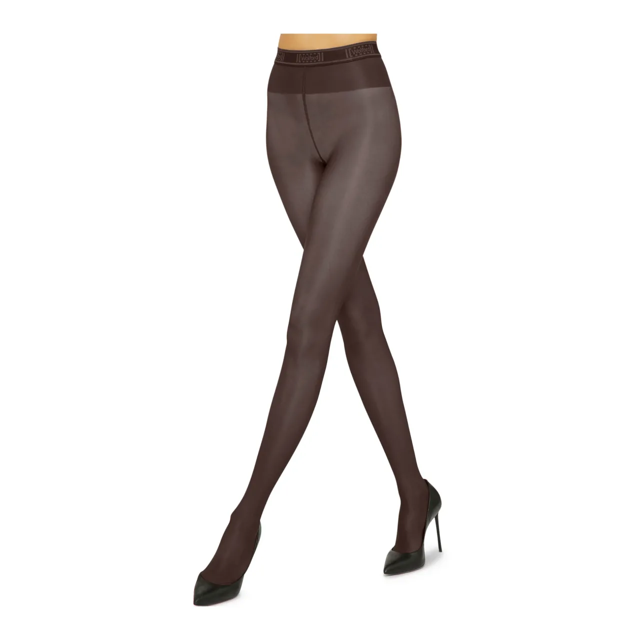 - 40 denier, soft elasticated Linear waistband, logo detail, sheen look, semi-sheer, almost-invisible reinforced toe