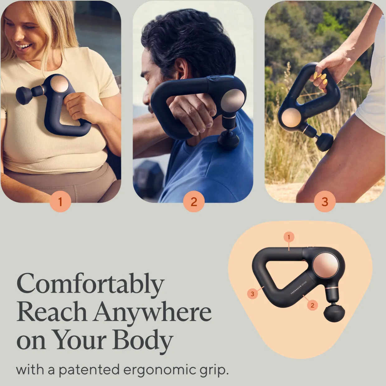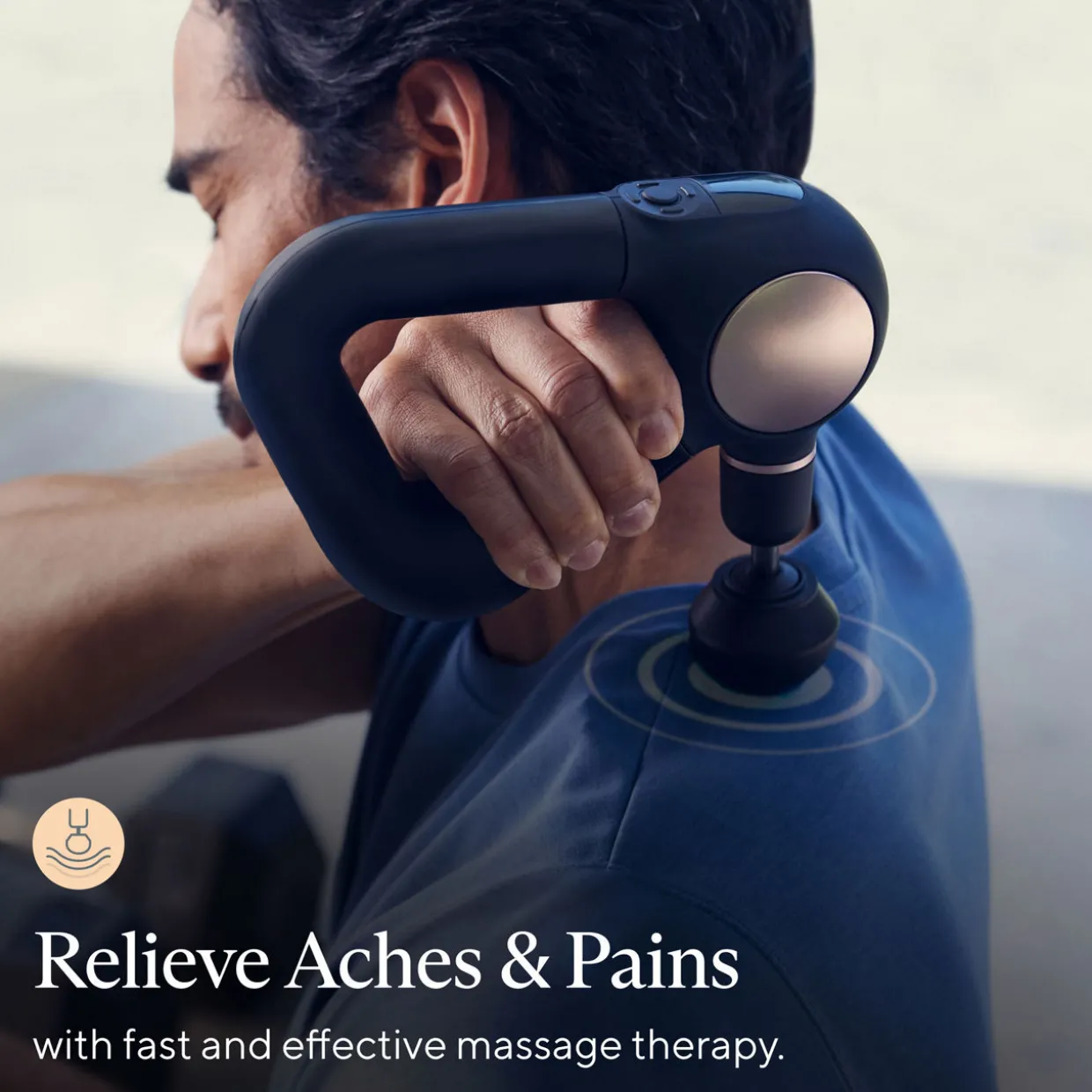 - Handheld bluetooth enabled percussive therapy massage gun with smart app and four attachments