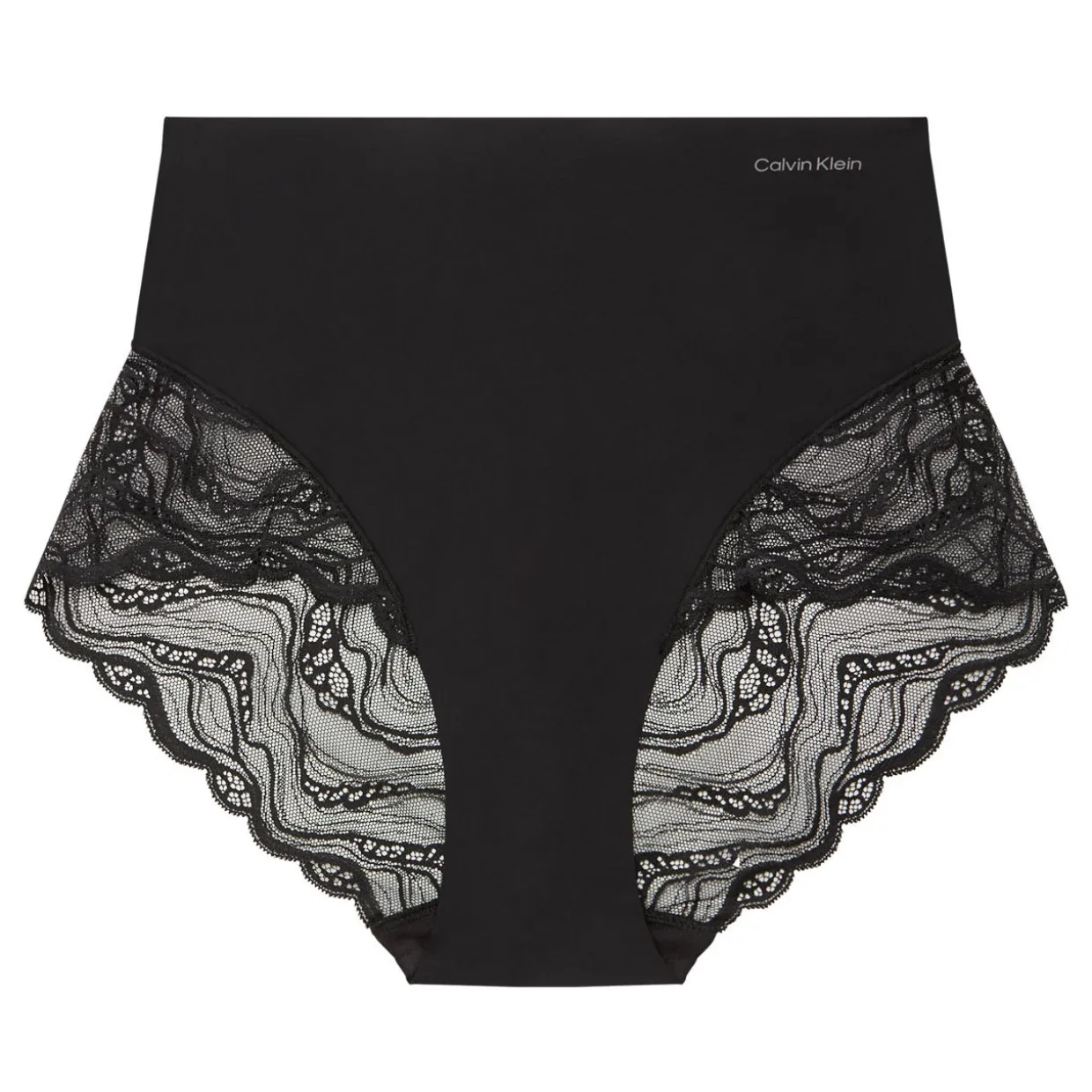 - High-rise, sheer lace back and hem, targeted tummy control, scalloped lace panels, stretch lace design, logo printed waistband