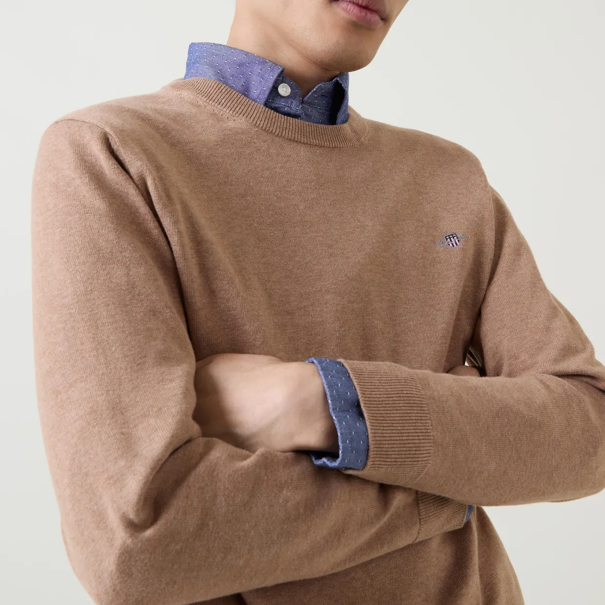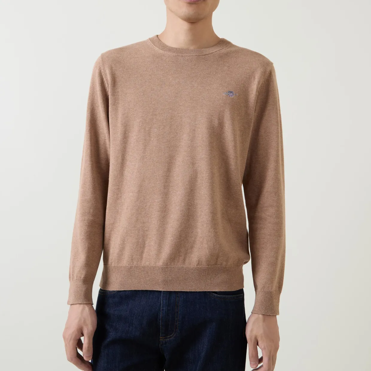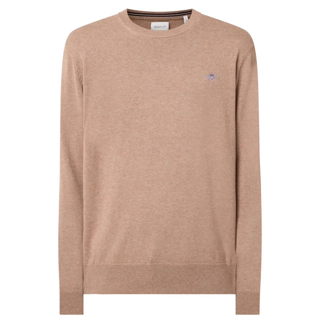 - Crew neckline, long sleeves, ribbed trims, straight hemline, shield logo