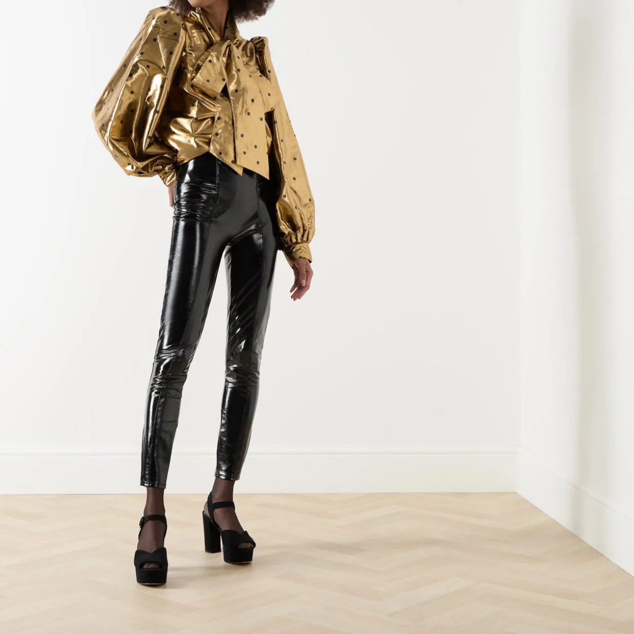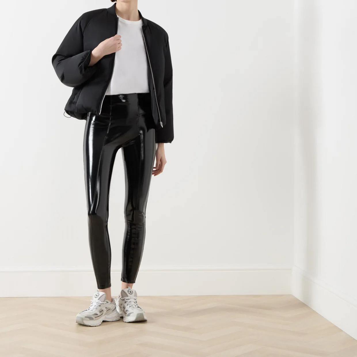 - Slim fit, high waist, Power Waistband, faux-patent leather finish.