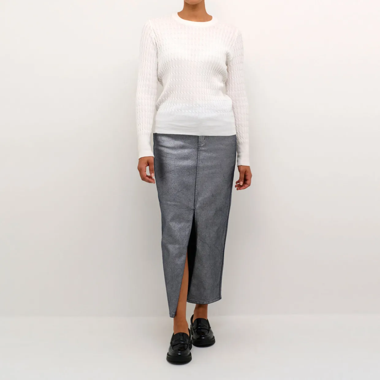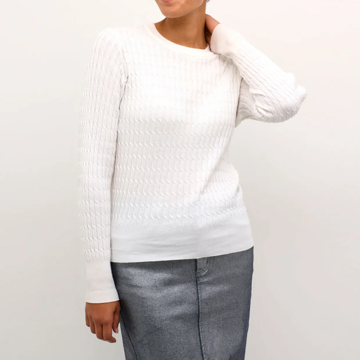 - Crew neckline, long sleeves, straight hemline, cable-knit finish