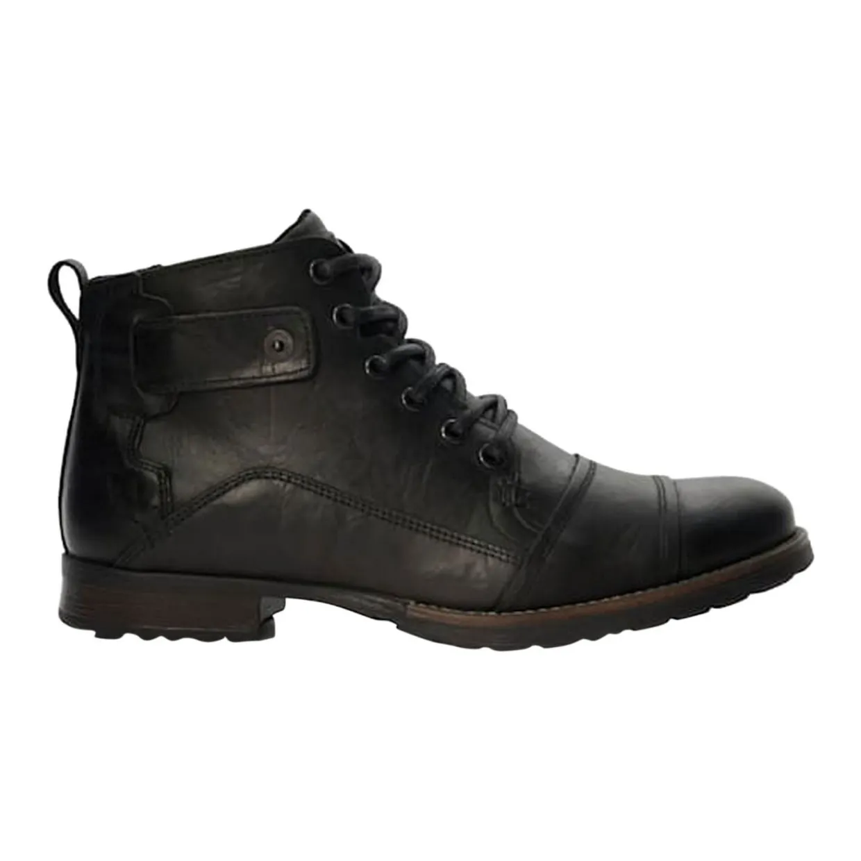 - Lace up, seam detailing, press stud strap detail, pull tab, almond-shaped toe